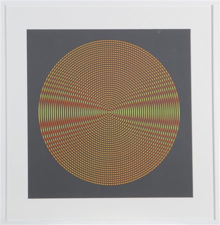 BIASI ALBERTO (n. 1937) Interferenza rosso giallo S3. . 1970. Serigrafia. Cm 46,00 x 46,00. 3/100. Tiratura, firma, titolo e anno in basso a matita. . Cornice presente