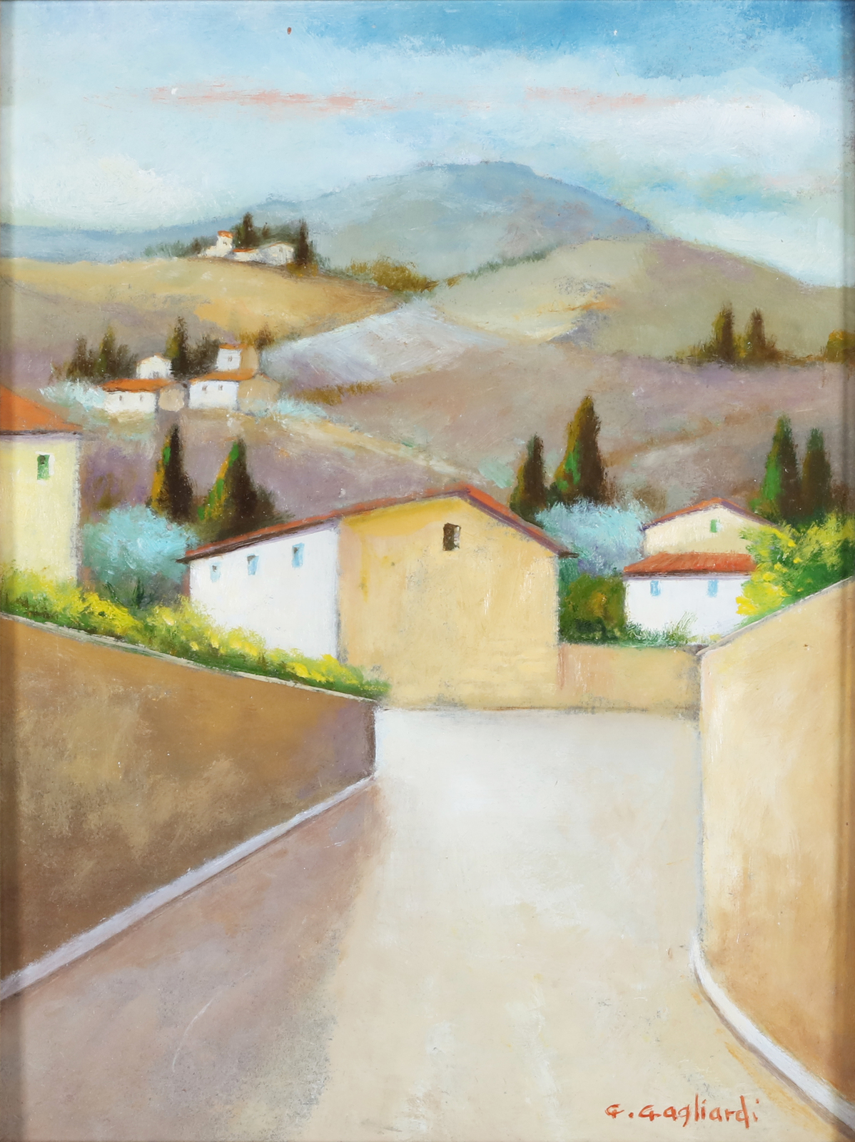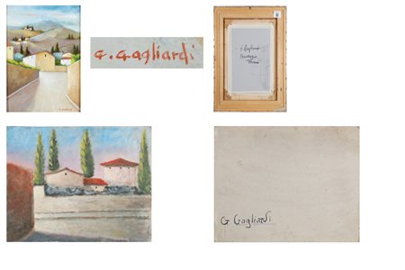 GAGLIARDI GIUSEPPE (n. 1896) Lot composed n. 2 works. Tuscan Landscape. Oil on cardboard. Cm 50,00 x 40,00. Signature at the back. Works size: 40x30 cm;40x50 cm . Signature lower right.