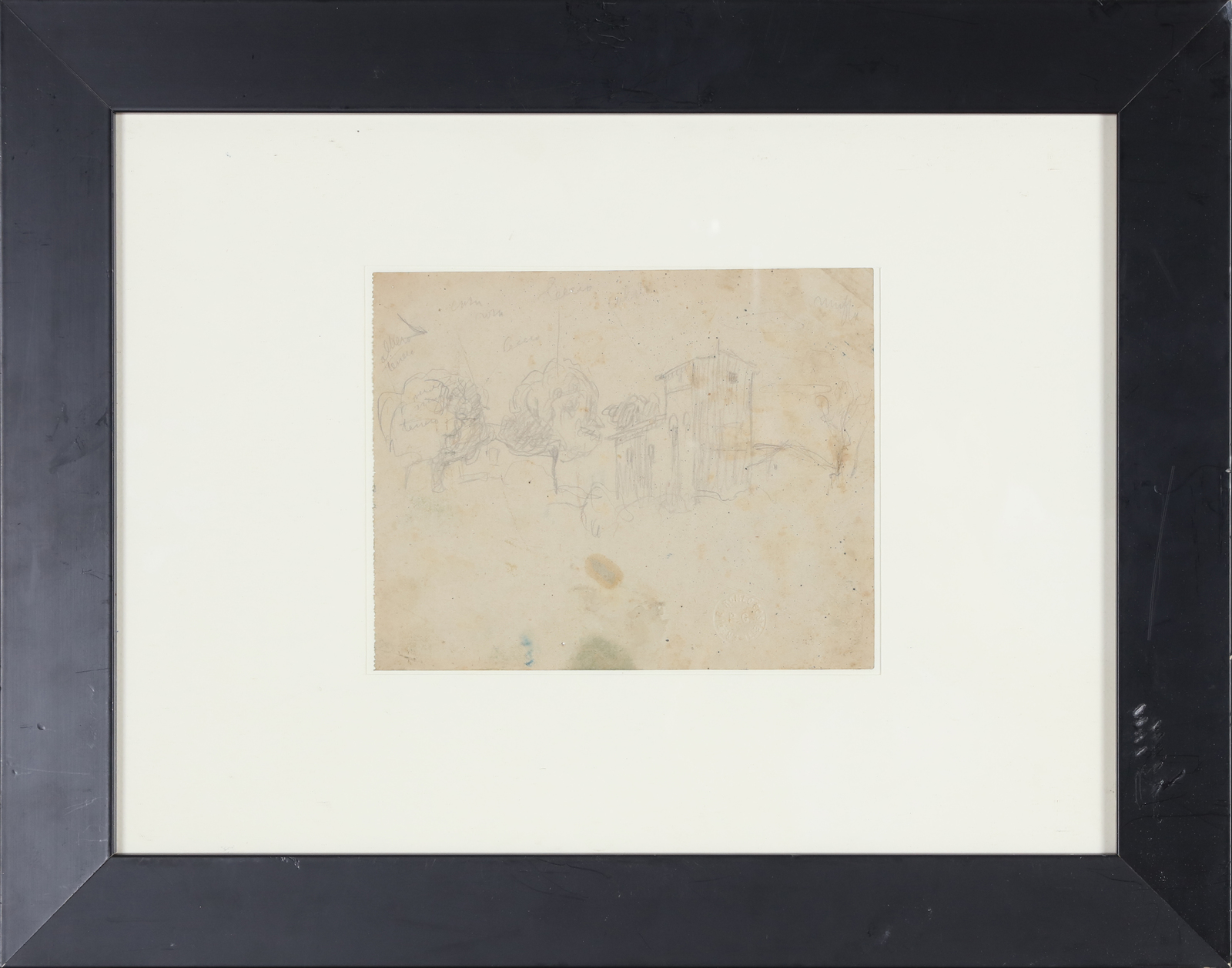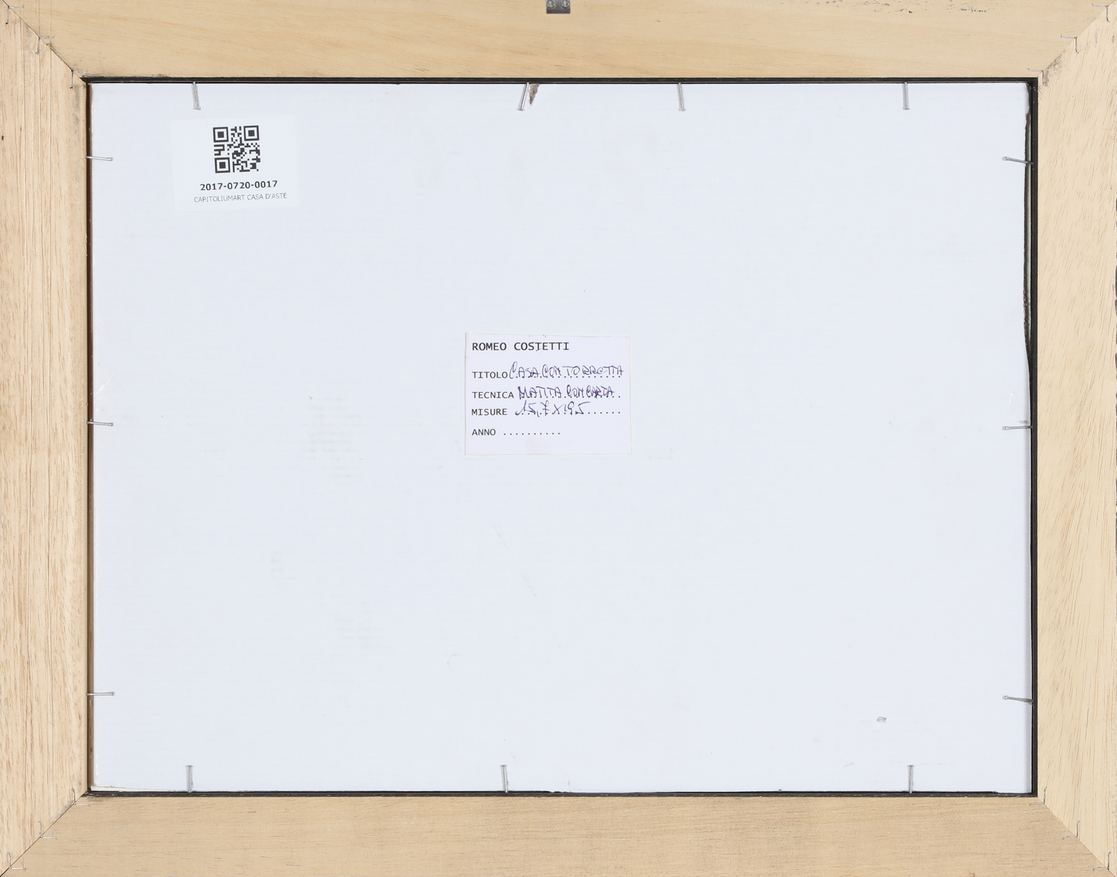 COSTETTI ROMEO (1871 - 1957) Casa con torretta. Matita su carta. Cm 19,50 x 15,70. Timbro a secco dell'artista in basso a destra. Al retro cartiglio descrittivo. Cornice presente