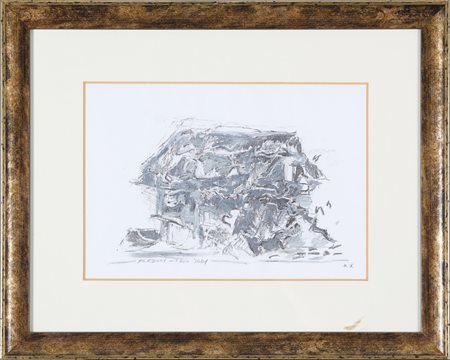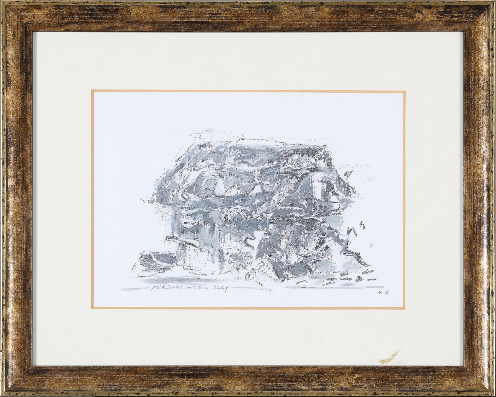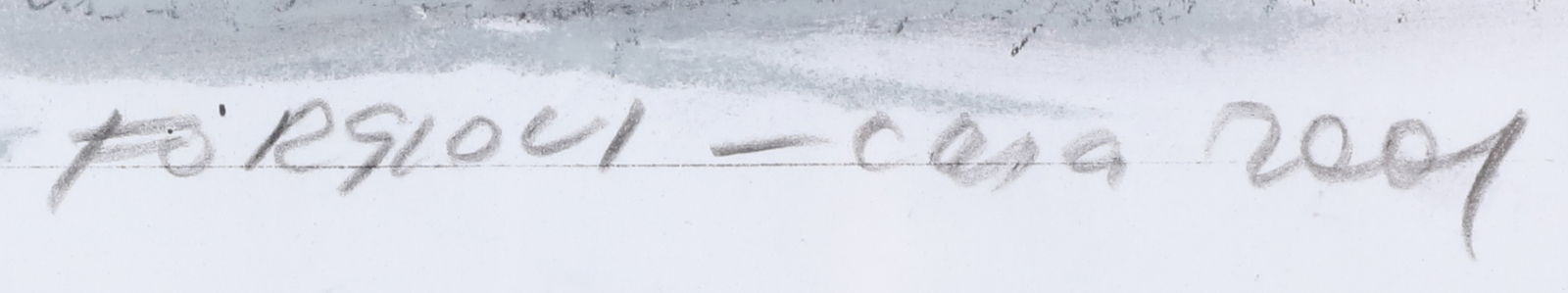 FORGIOLI ATTILIO (n. 1933) Casa. 2001. Tecnica mista su carta. Cm 40,00 x 30,00. Le dimensioni si riferiscono alla sola parte disegnata. Firma titolo e anno in basso a sinistra.