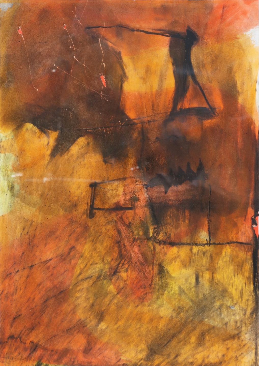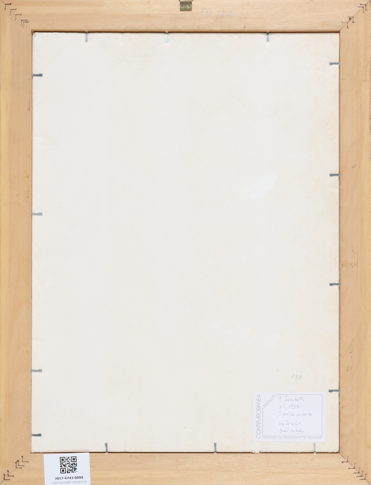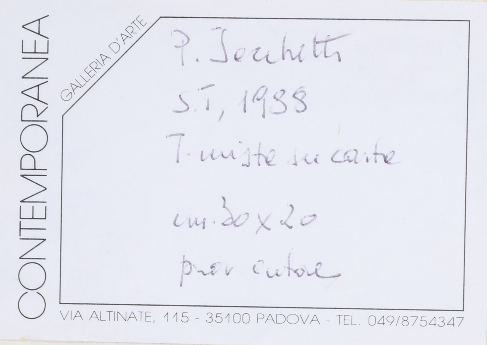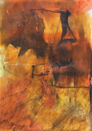 IACCHETTI PAOLO (n. 1953) Senza titolo. 1988. Tecnica mista su carta. Cm 21,00 x 30,00. Al retro cartiglio descrittivo Contemporanea Galleria D'Arte, Padova. . Cornice presente
