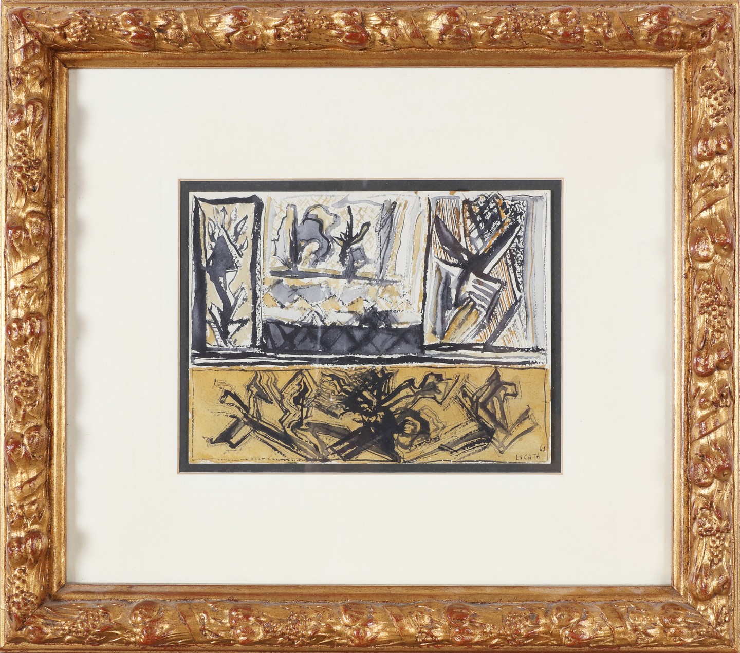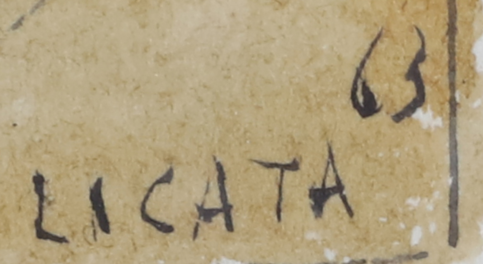 LICATA RICCARDO (1929 - 2014) Untitled. 1963. Mixed media on paper. Cm 19,00 x 14,00. Signature and year lower right.. Cornice presente