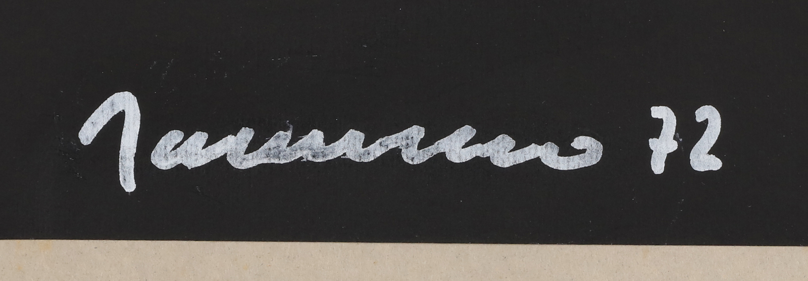 SARENCO (ISAIA MABELLINI) (n. 1945) Writing is no longer the one of a time. Summer is no longer the one of a time. 1972. Mixed media and collage on paper. Cm 36,00 x 38,00. Title upper right. Signature and year lower left.