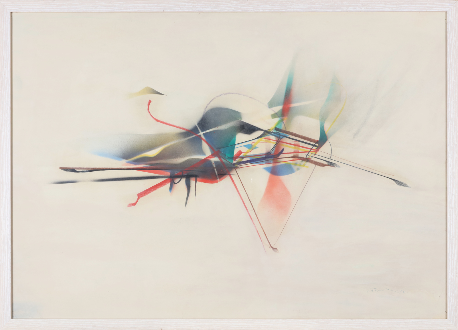 FRANCESCHINI EDOARDO (1928 - 2006) Senza titolo. Tecnica mista su carta Fabriano. Cm 100,00 x 70,00. Firma e anno in basso a destra. Cornice presente