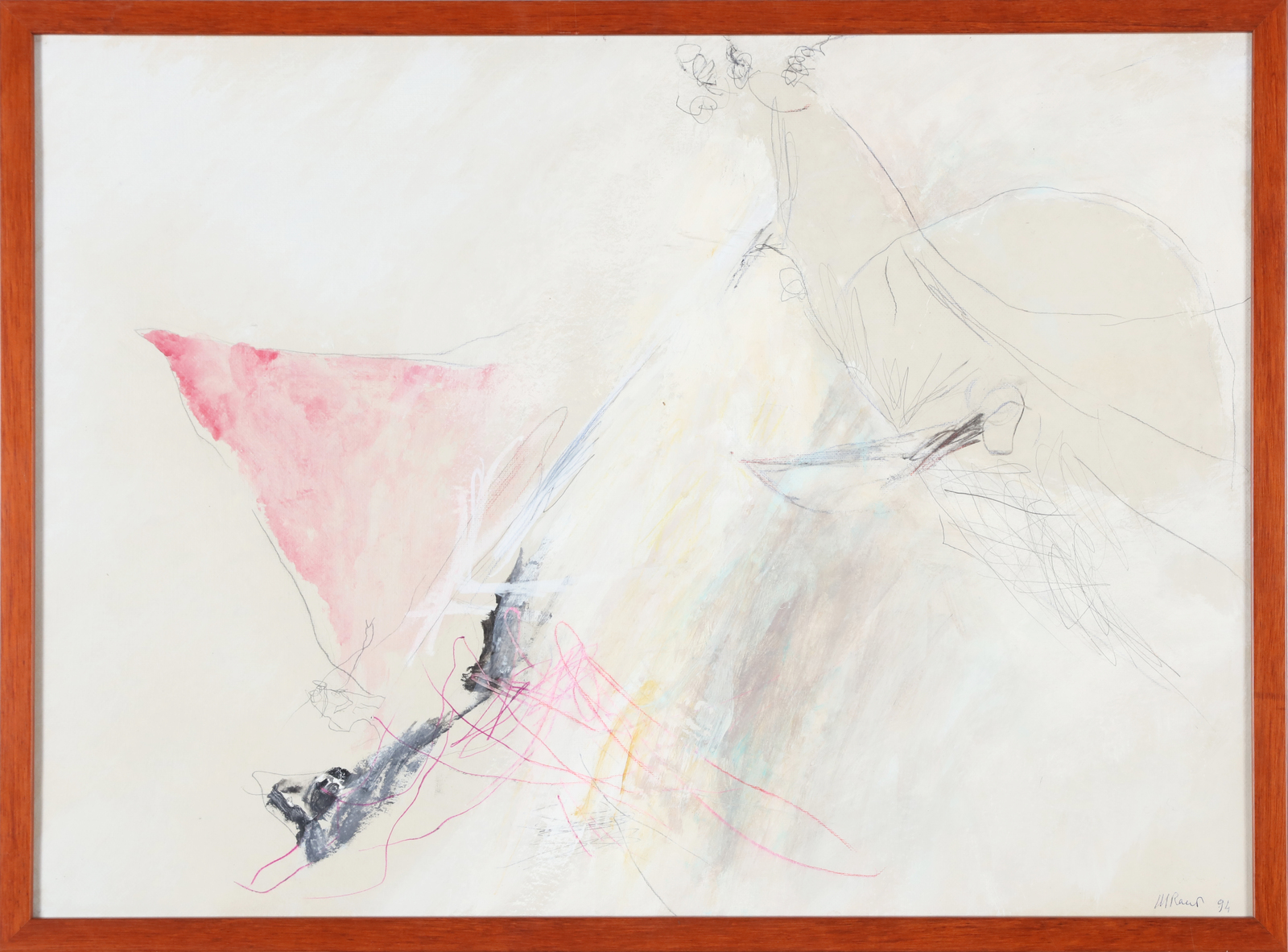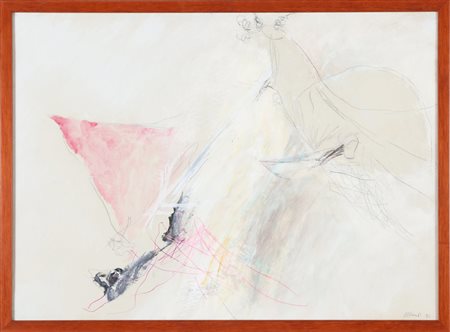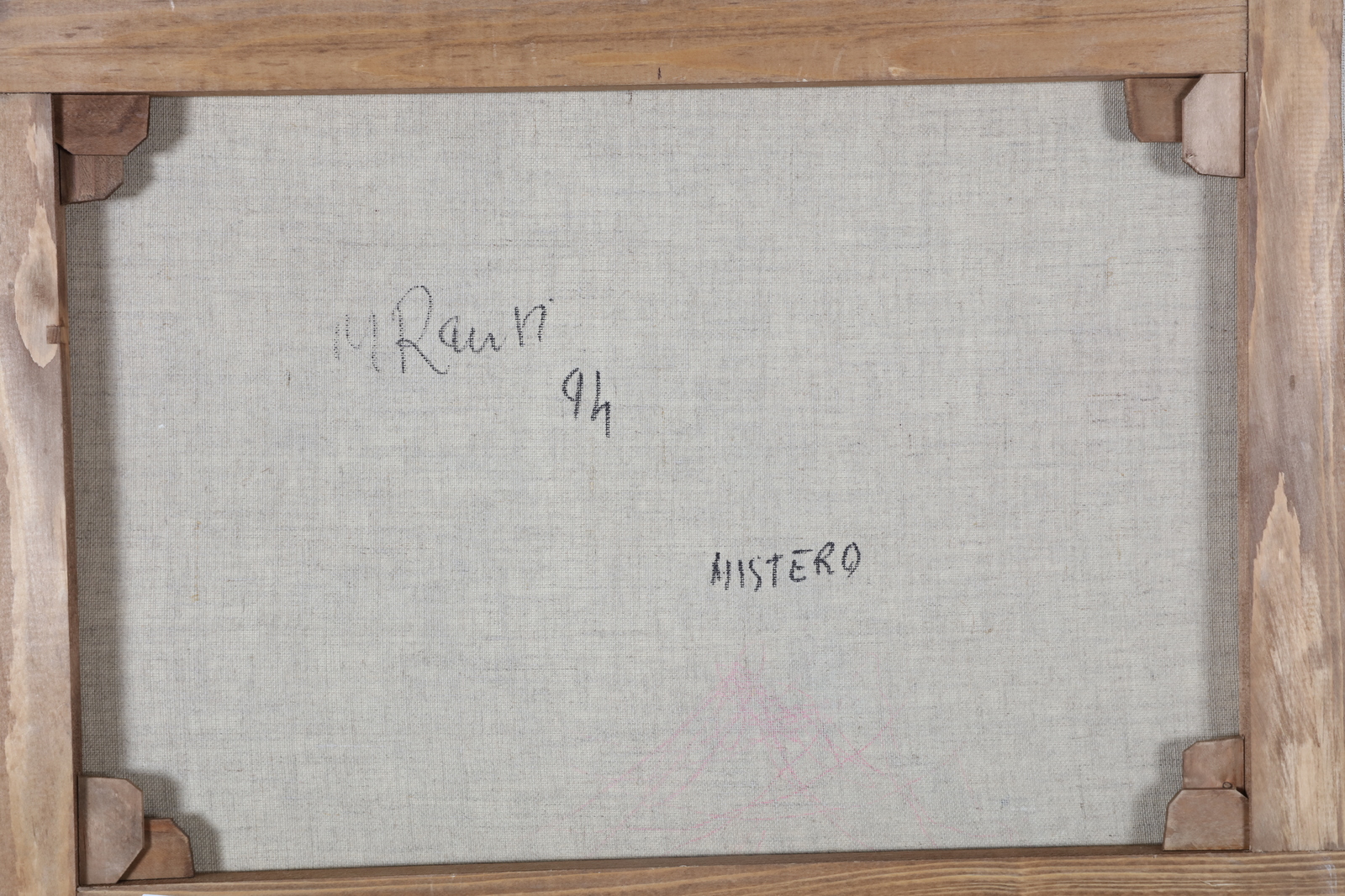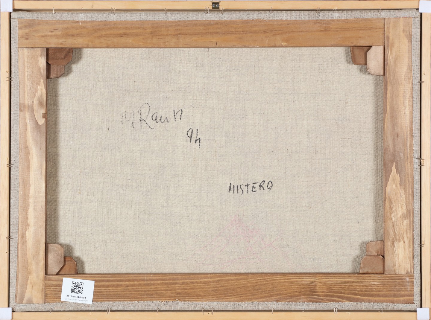RACITI MARIO (n. 1934) Mistero. 1994. Tecnica mista su carta intelata. Cm 59,50 x 50,20. Firma e anno in basso a destra. Al retro titolo, firma e anno. Autentica dell'artista su fotografia. . Cornice presente