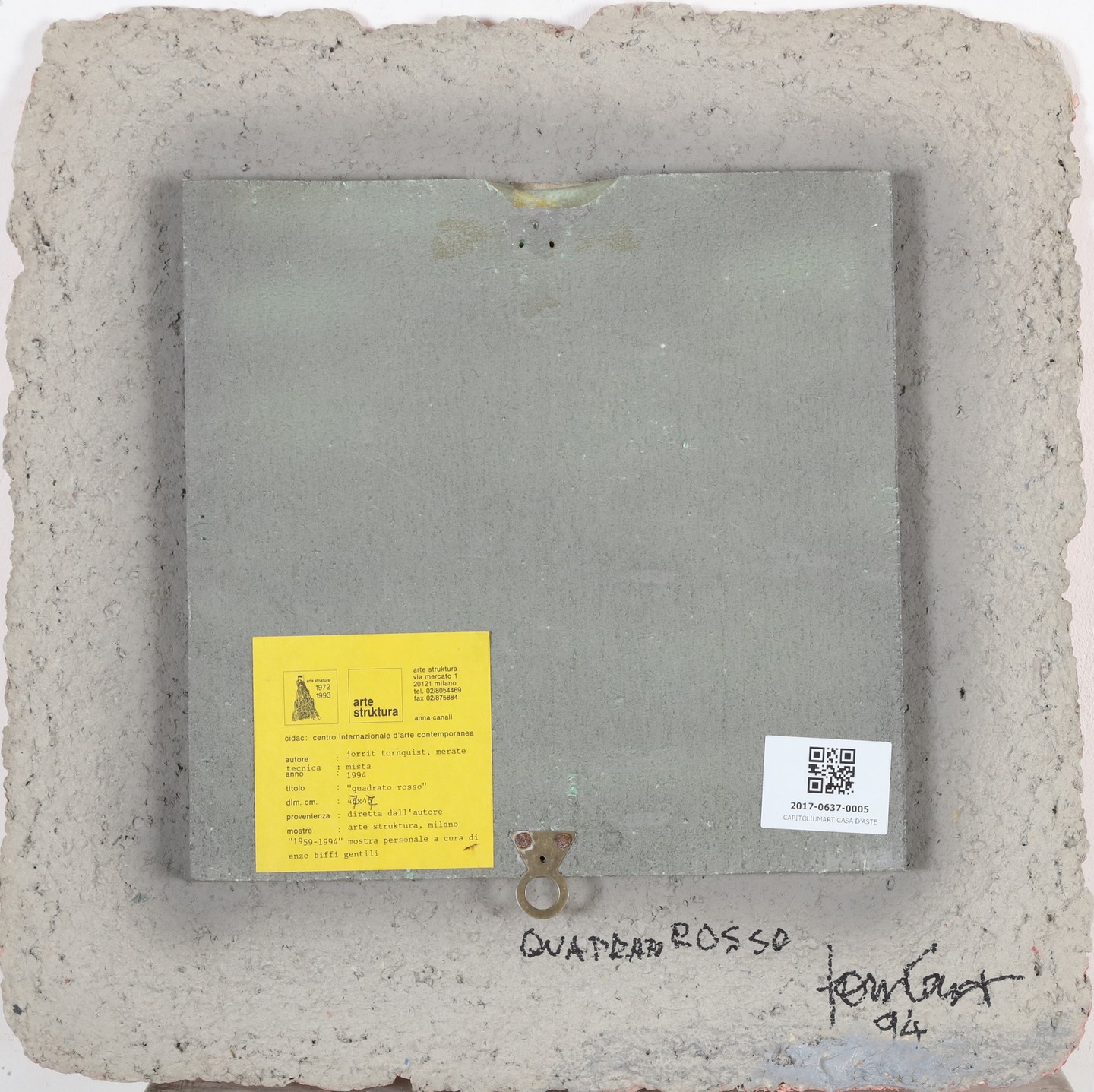 TORNQUIST JORRIT (n. 1938) Red square. 1994. . Cm 47,00 x 47,00. At the back title, signature, year and Arte Struktura, Milan label . Tornquist Jorrit Archives authenticity certificate on photo. Publication: Personal exhibition catalog 1959 - 1994 by Enzo Biffi Gentili, Art Sruktura Gallery, Milan, 1994. Exhibitions: 1959 - 1994, personal exhibition by Enzo Biffi Gentilini, Arte Struktura Gallery, Milan.
