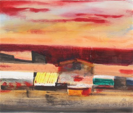 MAGAZZINI SALVATORE (n. 1955) Marrakech. Olio su tavola. Cm 43,00 x 38,00. Firma in basso a destra. Al retro firma e titolo. . Cornice presente