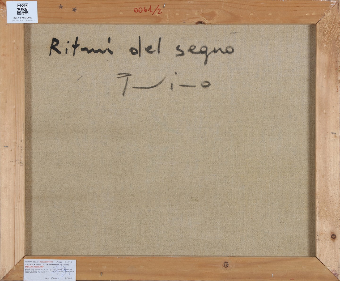 PROVINO SALVATORE (n. 1943) Rhythms of the sign. 1981. Oil on canvas . Cm 50,00 x 60,00. Signature and year lower right. At the back title and signature. Artist’s authenticity certificate on photo.