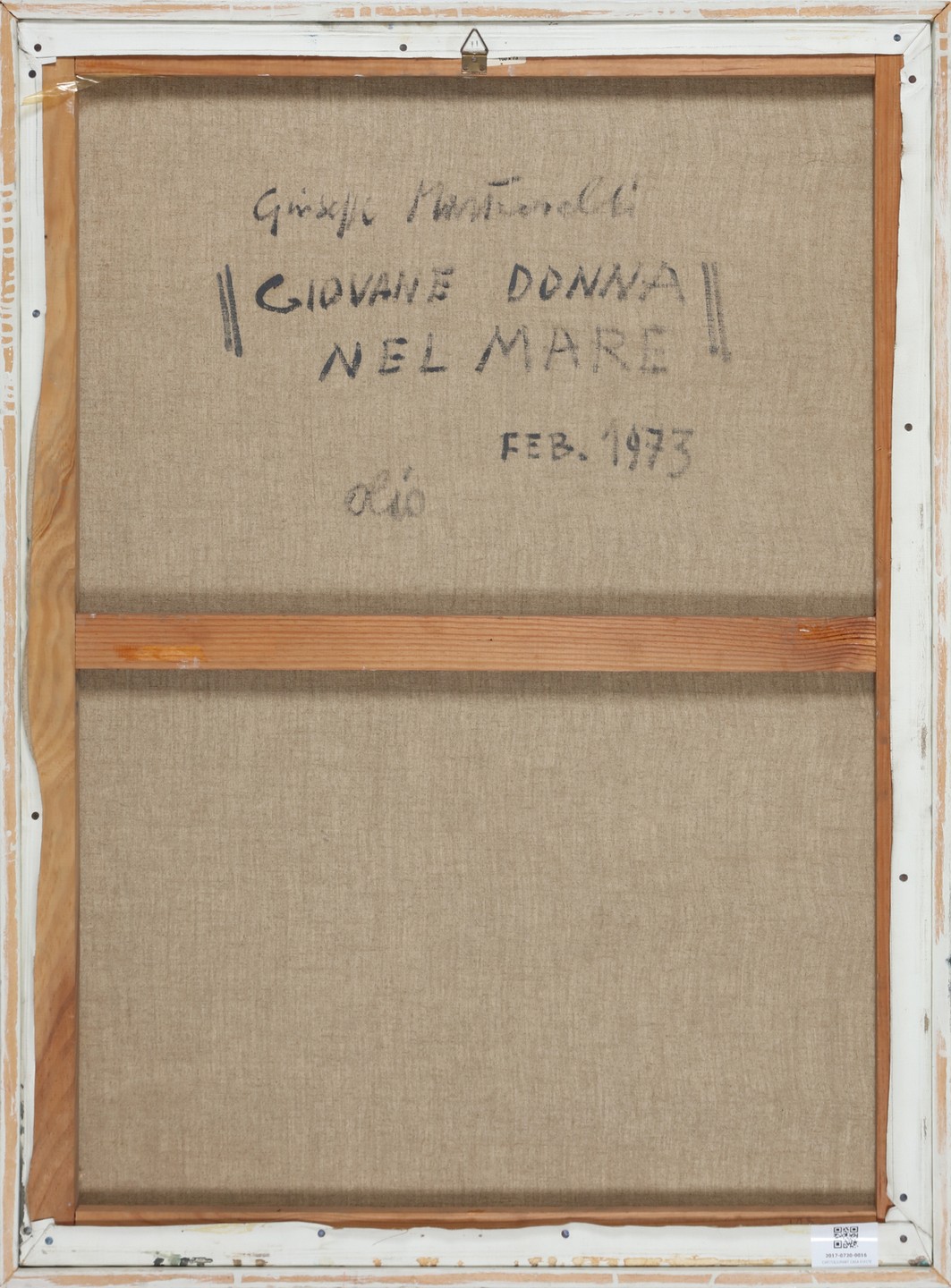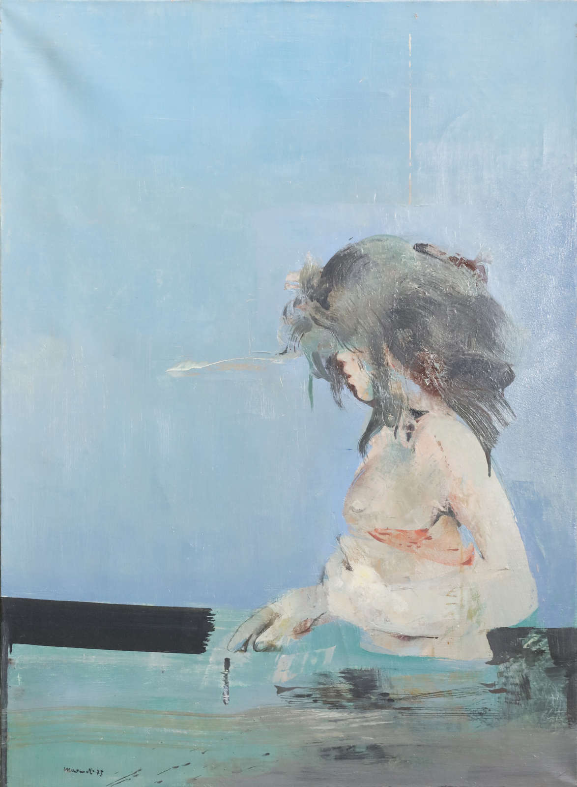MARTINELLI GIUSEPPE (n. 1930) Young woman in the sea. 1973. Oil on canvas . Cm 73,50 x 100,50. Signature and year lower left. At the back title, signature and year.