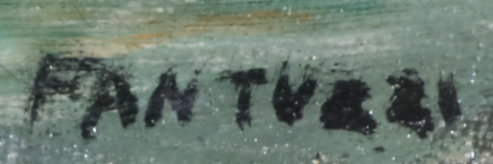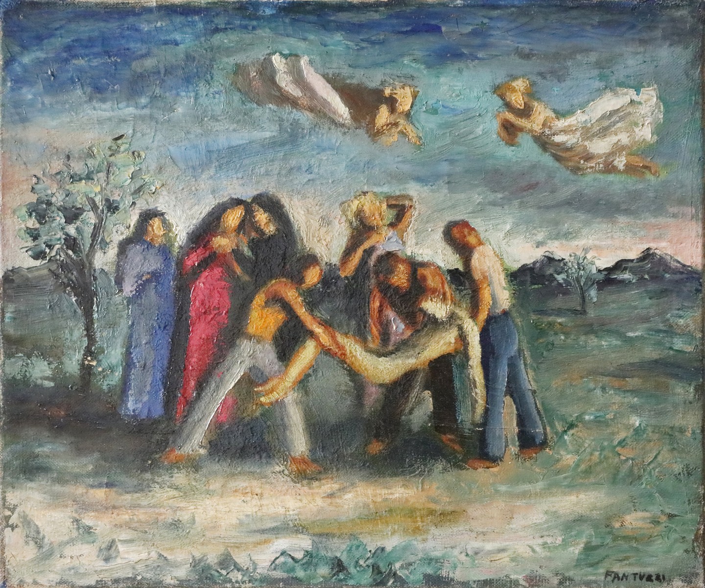 FANTUZZI ELIANO (1909 - 1987) Senza titolo. Olio su tela . Cm 38,00 x 46,00. Firma in basso a destra. Cornice presente