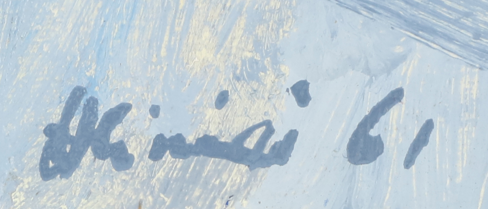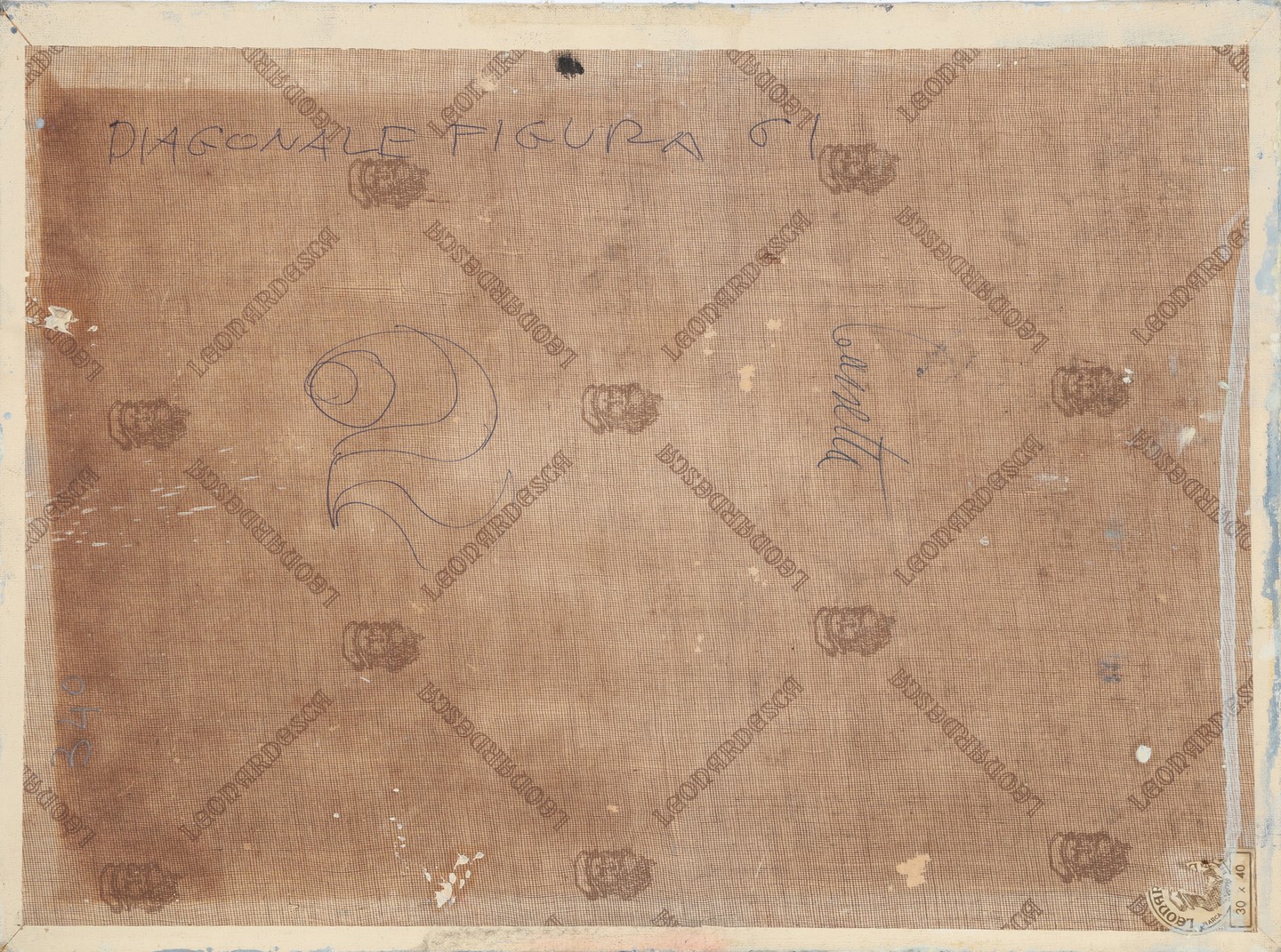 OLIVIERI CLAUDIO (n. 1934) Diagonal figure. 1961. Oil on canvas board. Cm 40,00 x 30,00. Signature and year lower right. At the back title and year. Artist’s autheticity certificate on photo.
