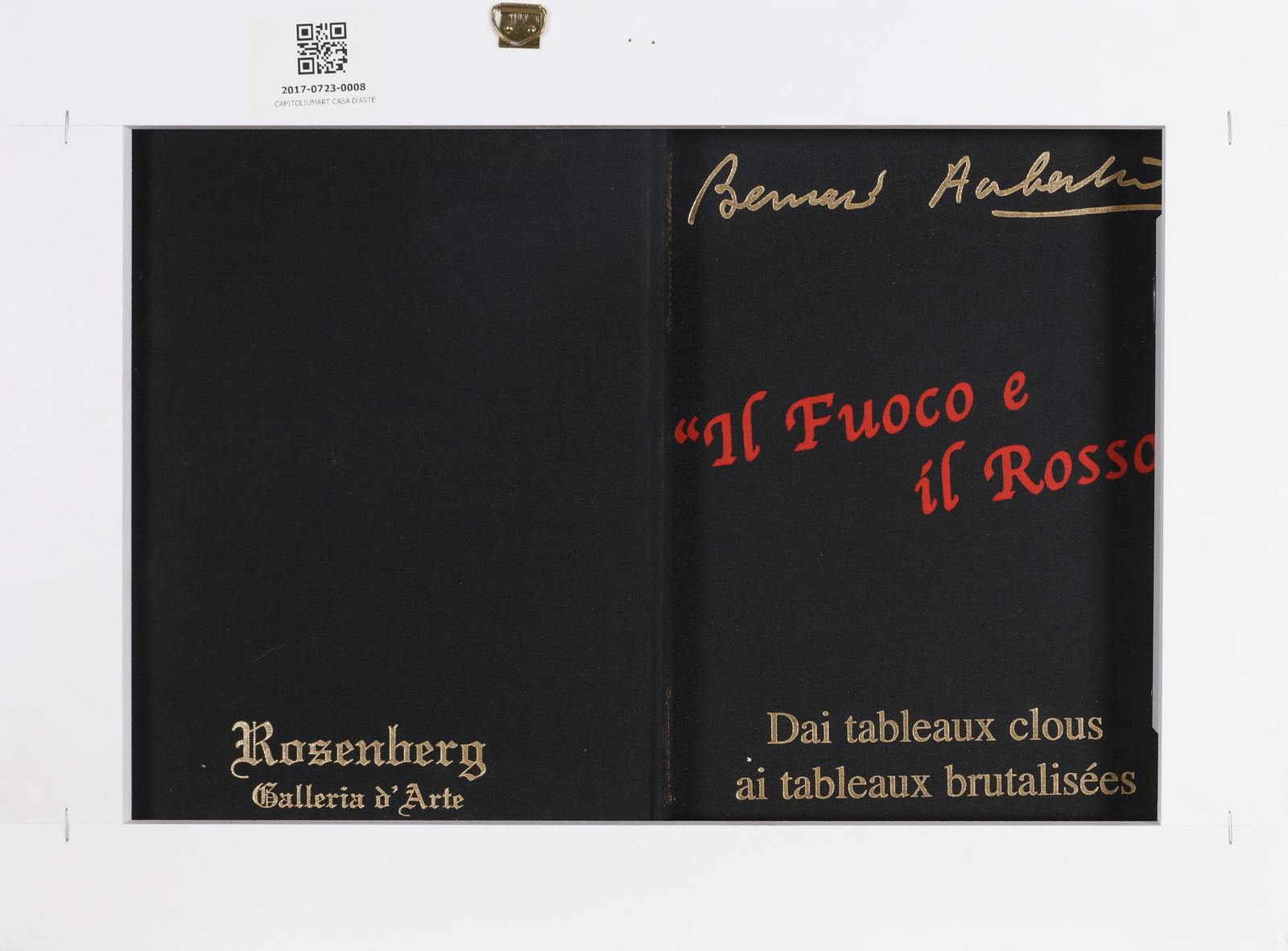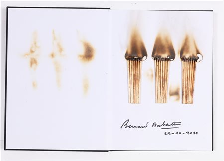 AUBERTIN BERNARD (1934 - 2015) The fire and the red. 2010. Burnt matches on catalogue. Cm 46,00 x 31,00. Signature and year lower right. Artist’s autheticity certificate on photo. Within a plexiglass case.