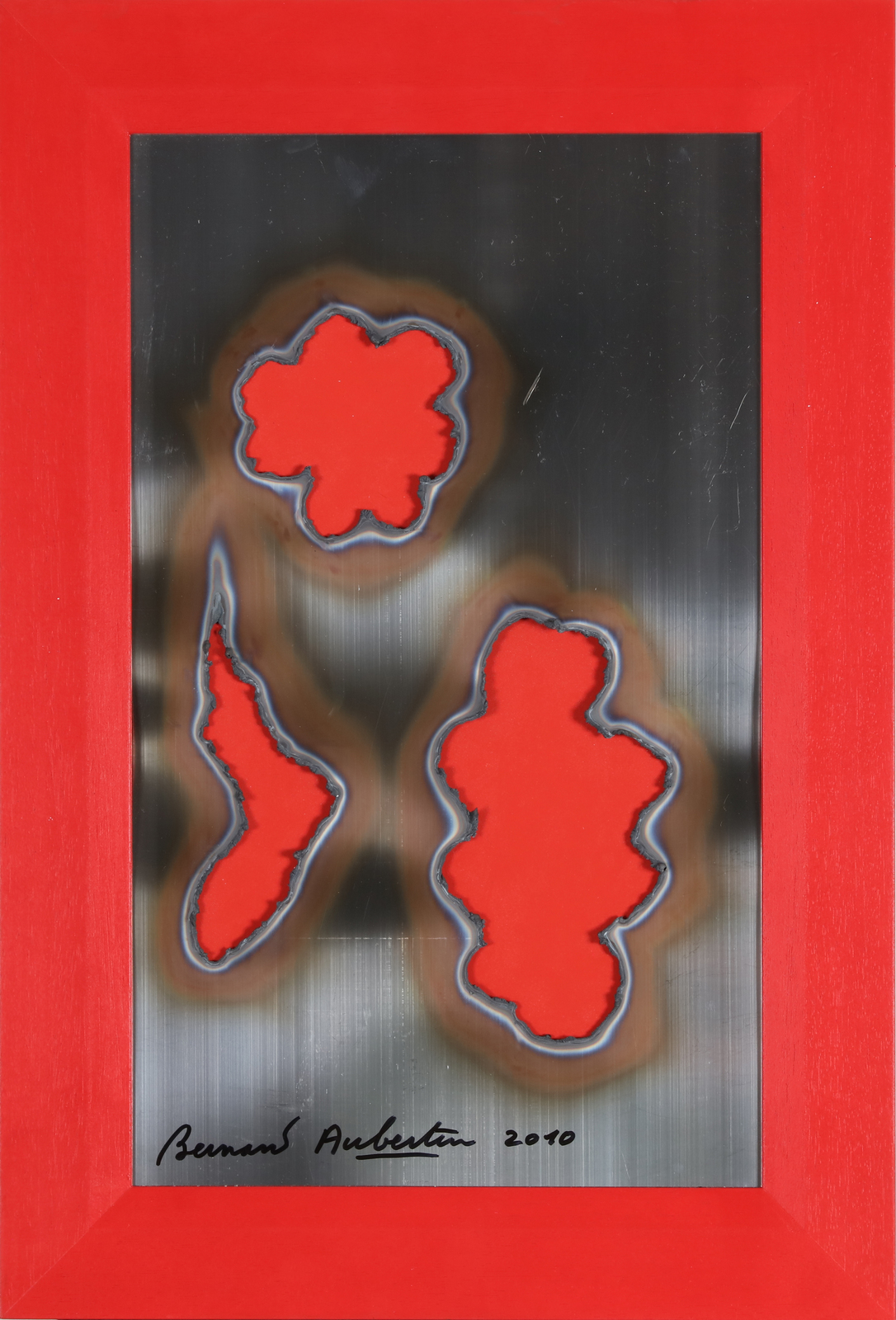 AUBERTIN BERNARD (1934 - 2015) Fer Brùlè. 2010. Lamiera bruciata. Cm 30,00 x 49,00. Firma e anno in basso a sinistra. Opera archiviata presso l'Archivio Nordest, Seregno riportante il relativo numero d'inventario e la firma dell'artista. Cornice presente