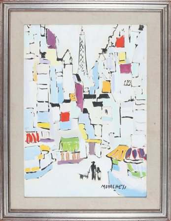 MONACHESI SANTE (1910 - 1991) Senza titolo. Olio su tela . Cm 50,00 x 70,00. Firma in basso a destra e al retro. Cornice presente