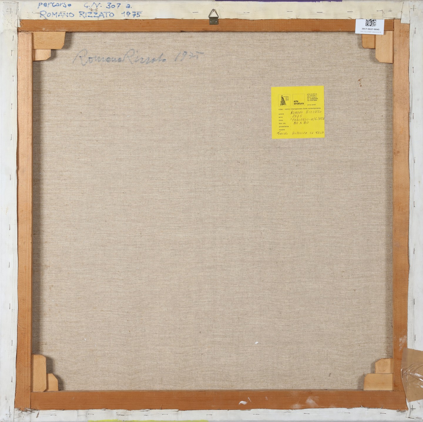 RIZZATO ROMANO (n. 1936) Path - G / V. 307. A. 1975. Acrylic on canvas. Cm 80,00 x 80,00. At the back title, signature, year and Arte Struktura, Milan label.