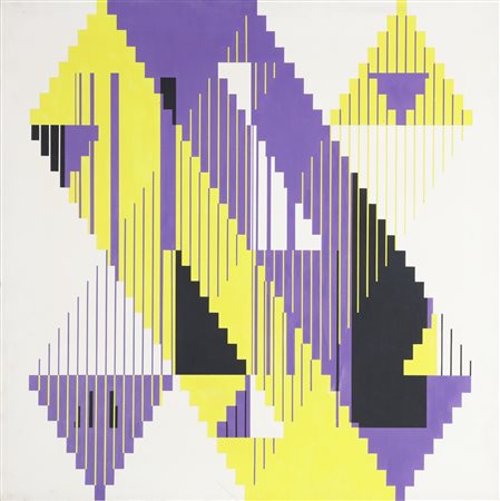 RIZZATO ROMANO (n. 1936) Percorso - G/V. 307. A. 1975. Acrilico su tela. Cm 80,00 x 80,00. Al retro titolo, firma, anno e cartiglio descrittivo Arte Struktura, Milano.