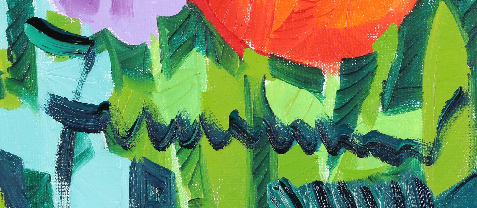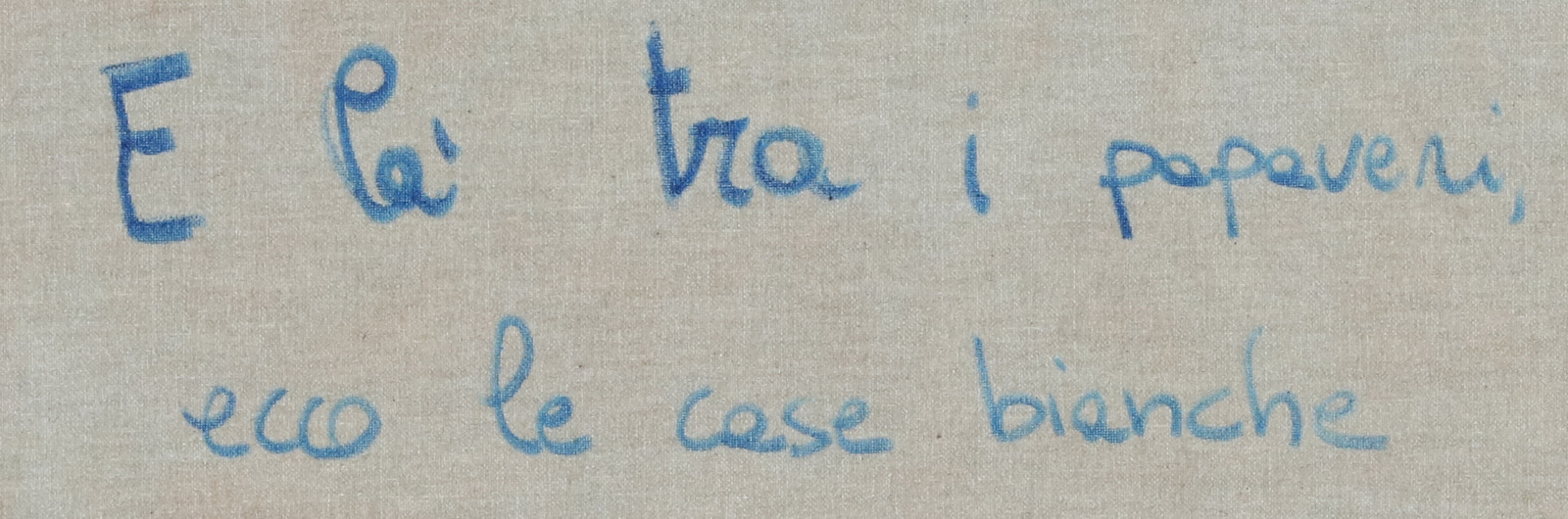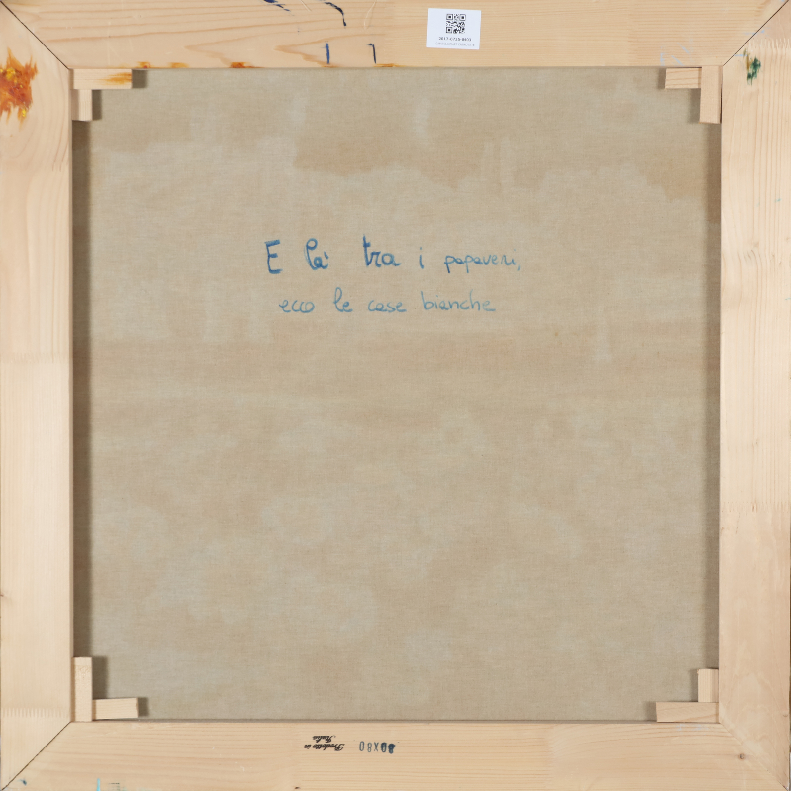 FACCINCANI ATHOS (n. 1951) E là tra i papaveri, ecco le case bianche. . Olio su tela . Cm 80,00 x 80,00. Firma in basso a destra. Al retro firma. Autentica dell'artista su fotografia.