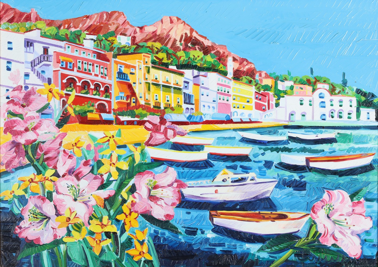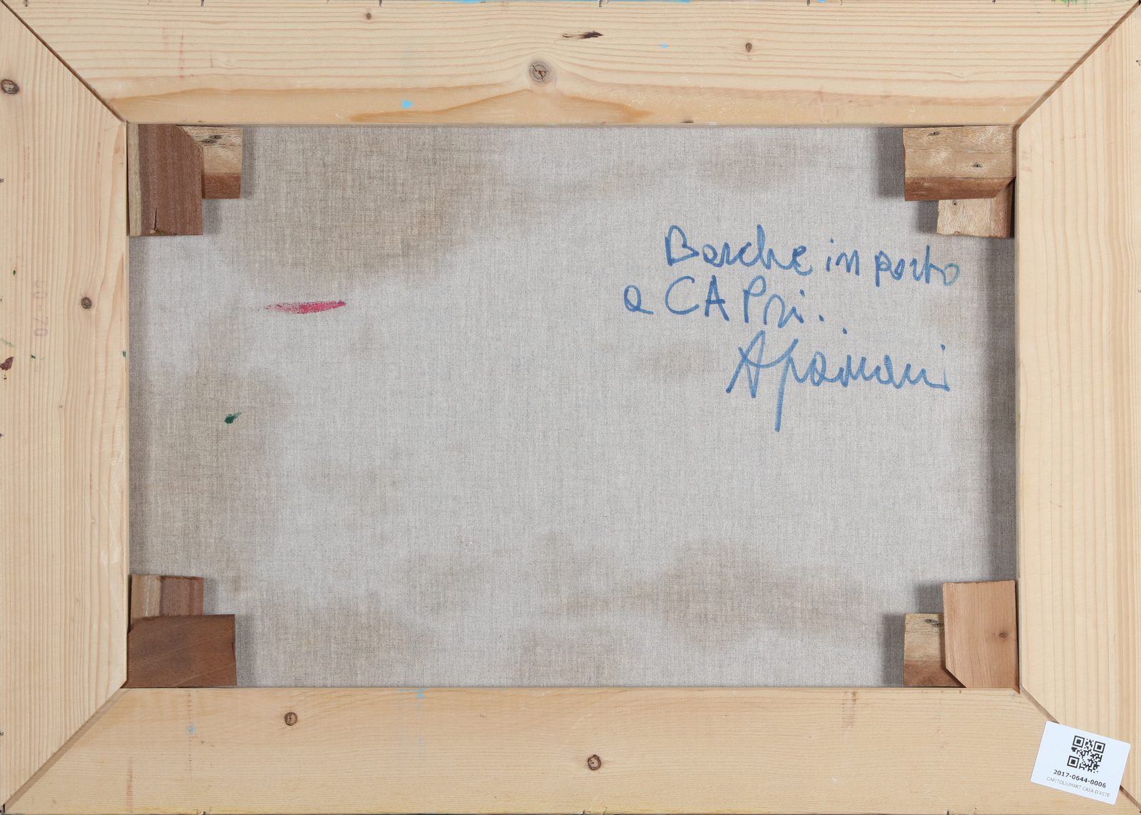 FACCINCANI ATHOS (n. 1951) Boats in port in Capri. 2006. Oil on canvas . Cm 70,00 x 50,00. At the back title and signature. Athos Faccincani Archive authenticity certificate on photo.