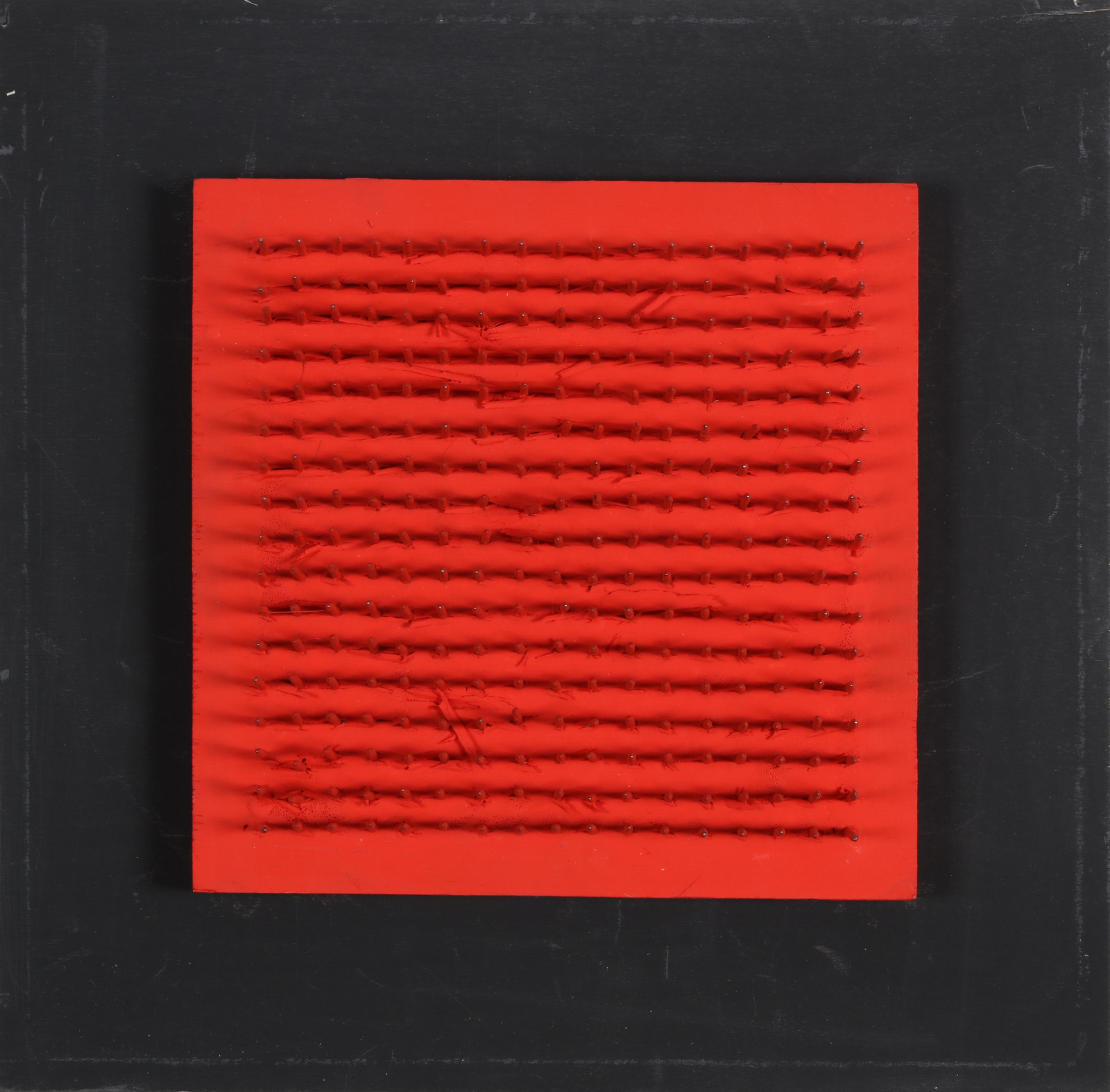 AUBERTIN BERNARD (1934 - 2015) Tableau clous. 1970. Nails on panel. Cm 20,00 x 20,00. At the back signature and year. Artist’s autheticity certificate on photo.