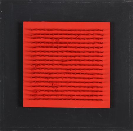 AUBERTIN BERNARD (1934 - 2015) Tableau clous. 1970. Chiodi su tavola. Cm 20,00 x 20,00. Al retro firma e anno. Autentica dell'artista su fotografia. Cornice presente