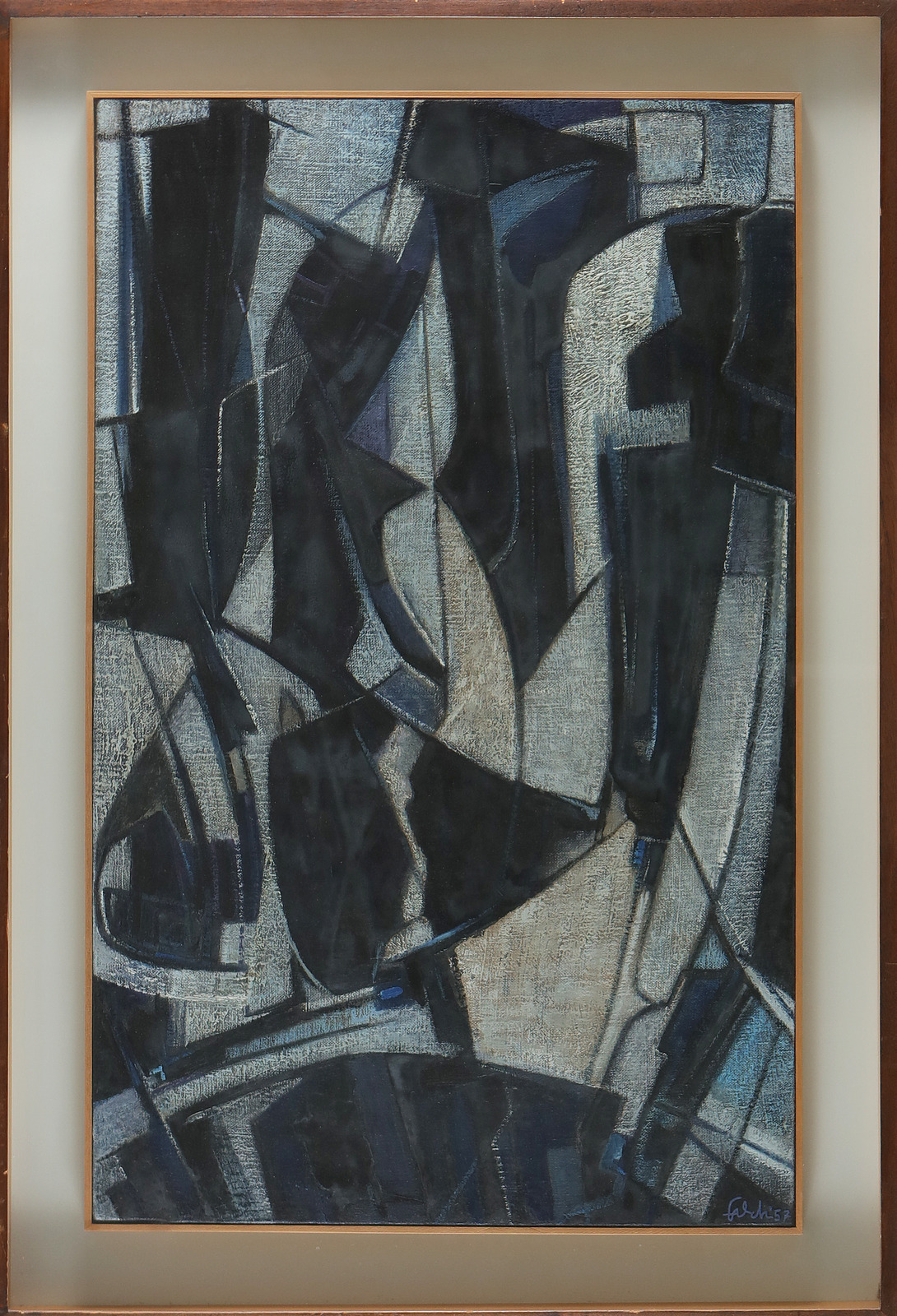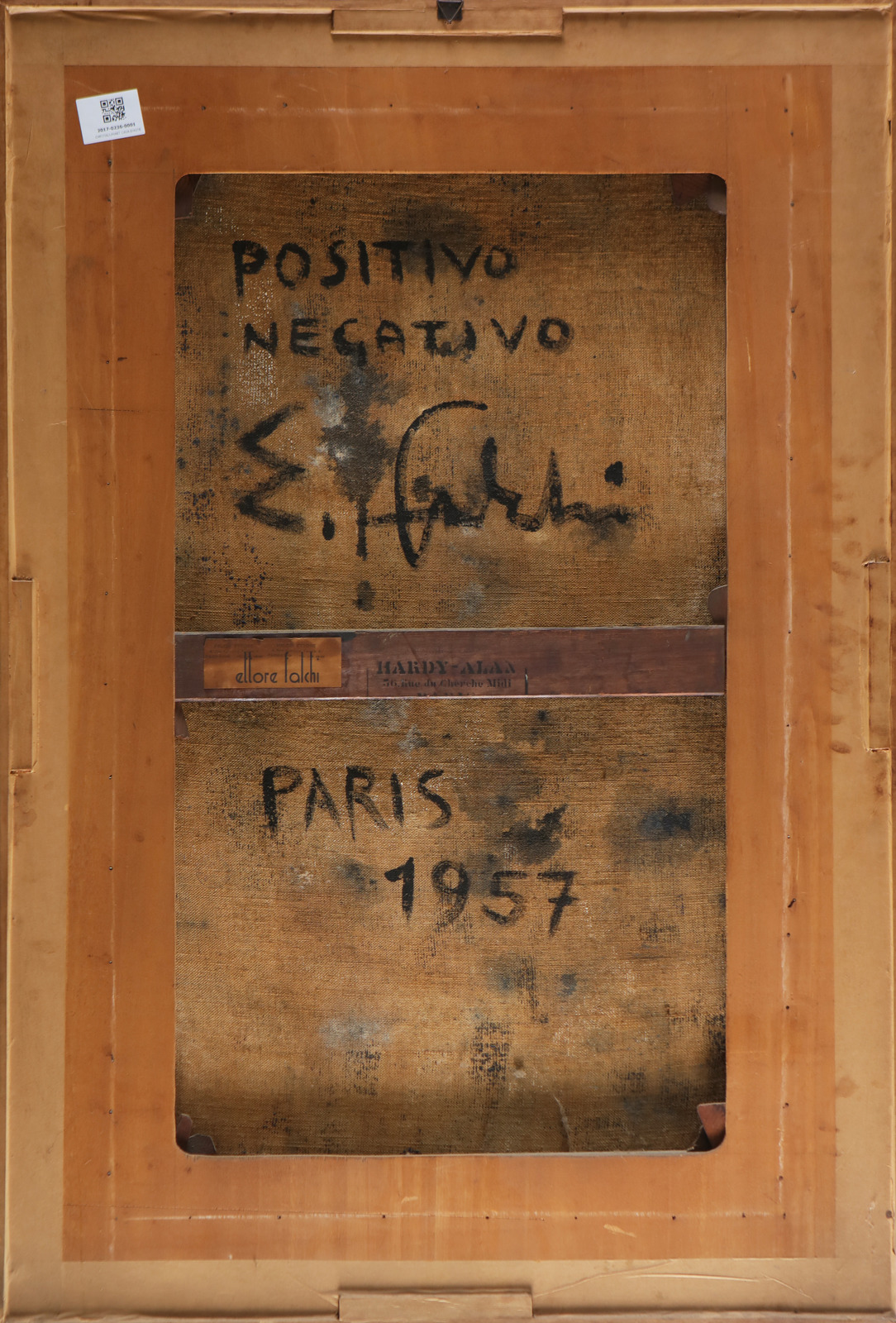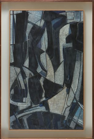 FALCHI ETTORE (1913 - 1997) Positive negative. 1957. Oil on canvas . Cm 95,00 x 60,00. Signature and year lower right. At the back: title, signature and year. Cornice presente