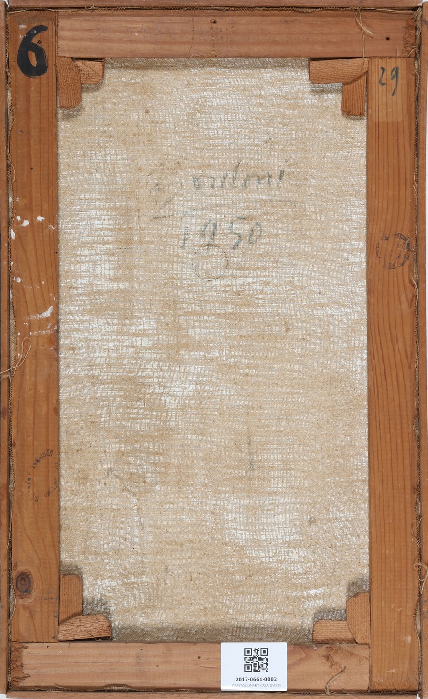 BORDONI ENRICO (1904 - 1969) Untitled. 1950. Oil on canvas . Cm 33,00 x 55,00. At the back signature and year. Small defects. Arnaldo Bordoni's authenticity certificate on canvas. Cornice presente