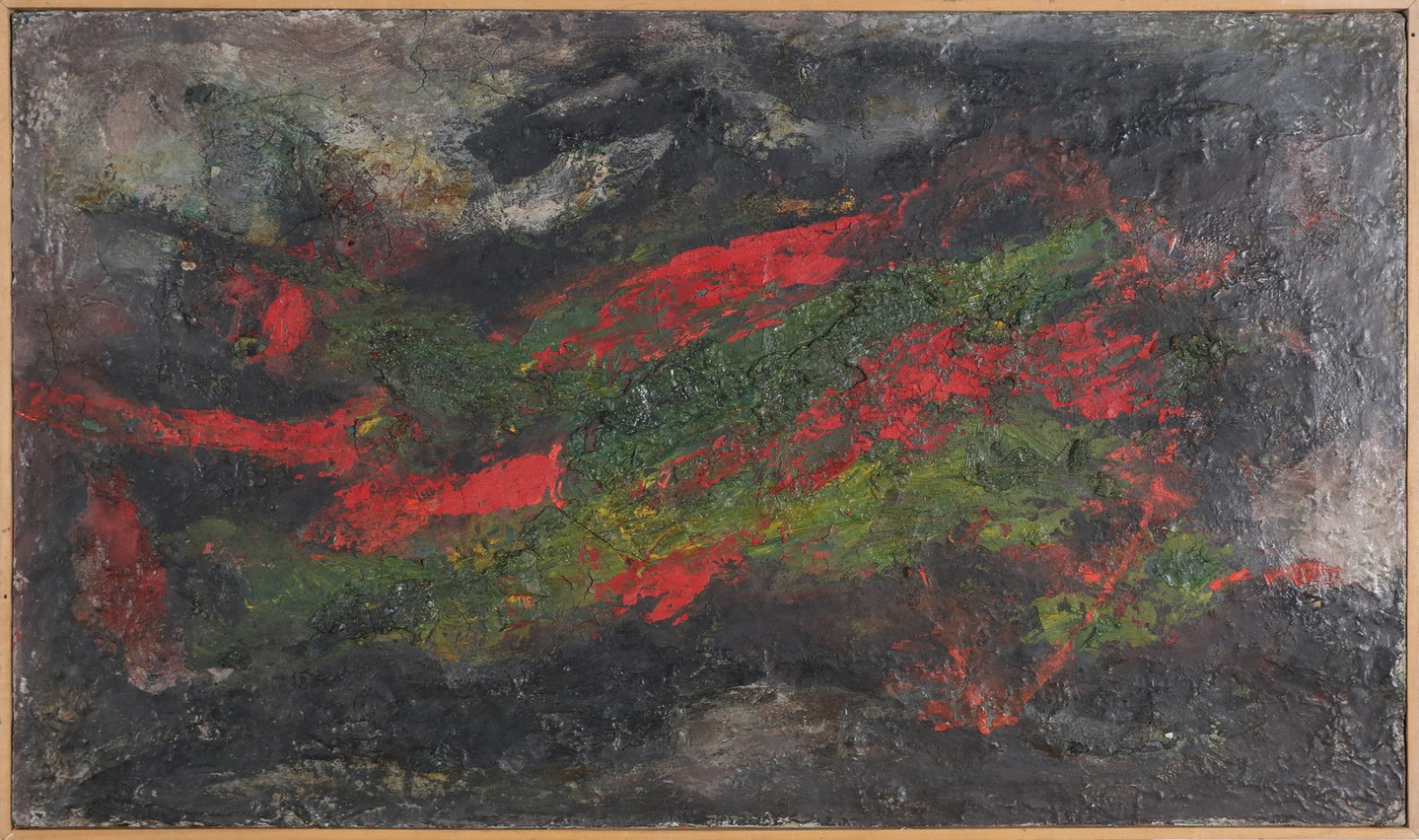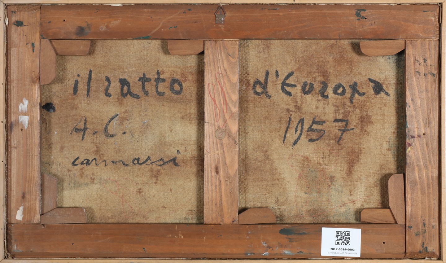 CARMASSI ARTURO (n. 1925) The rat of Europe. 1957. Oil on canvas . Cm 59,00 x 34,00. At the back title, signature and year.
