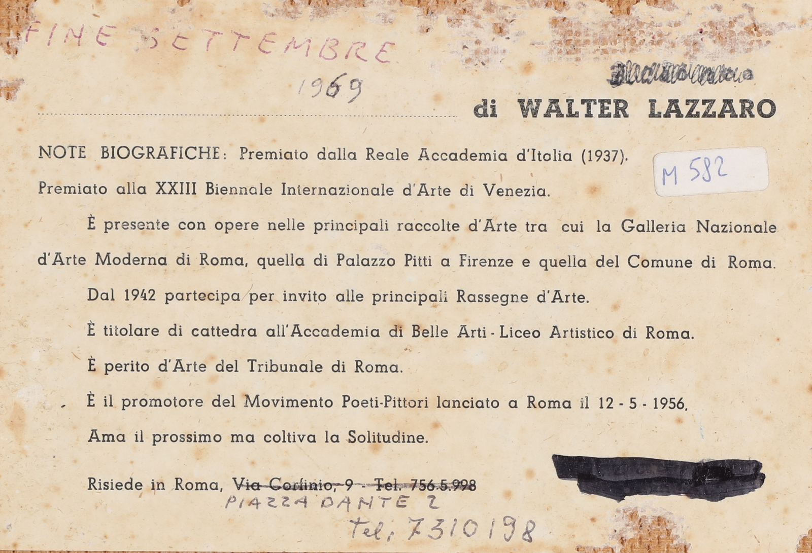 LAZZARO WALTER (1914 - 1989) Untitled. 1969. . Cm 30,00 x 40,00. Signature and year lower. At the back artist’s label.