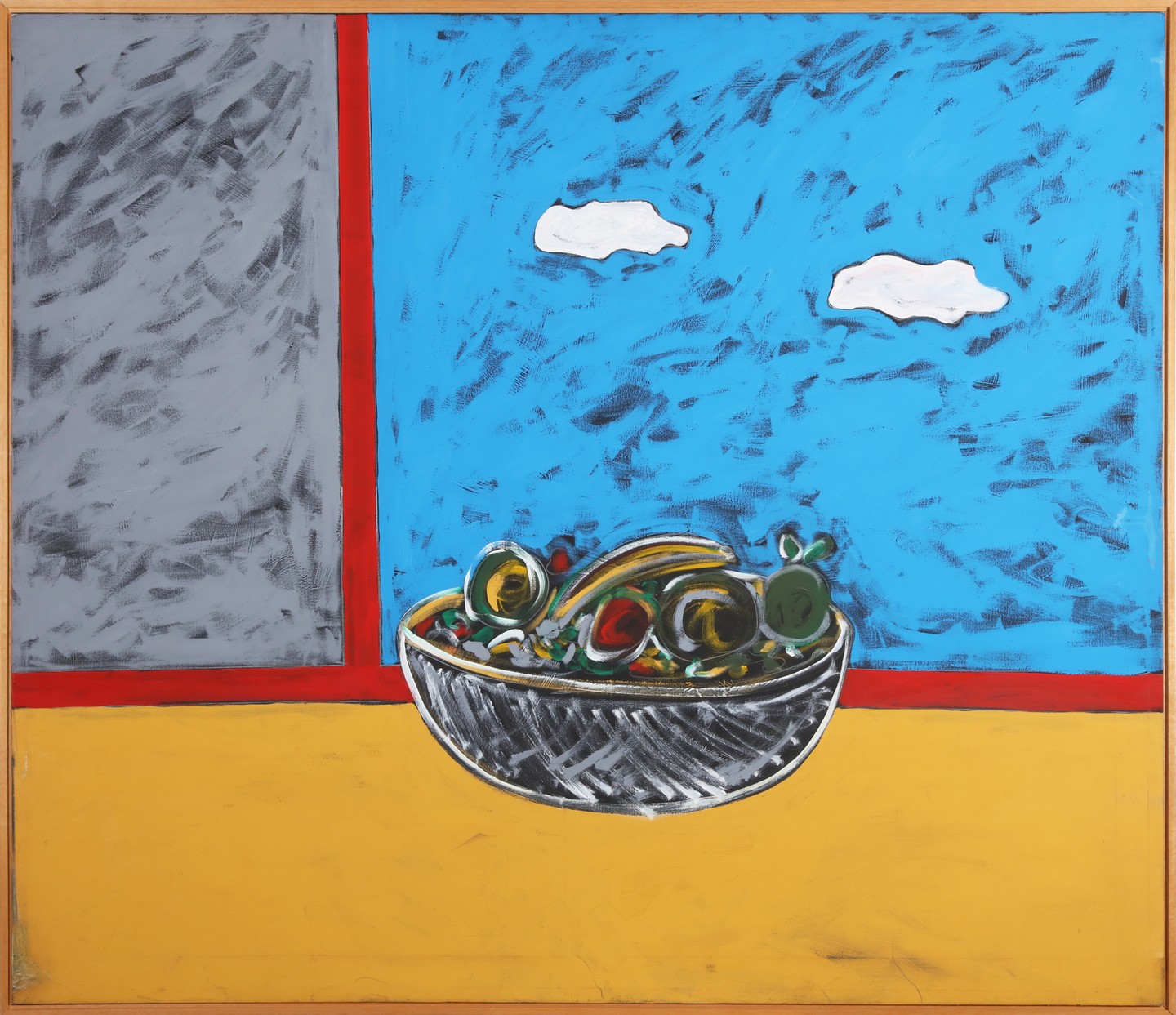 FESTA TANO (1938 - 1988) Natura morta. 1986. Acrilico su tela. Cm 140,00 x 120,00. Al retro titolo, frima e anno. Opera archiviata presso L'archivio delle opere Tano Festa - Studio Soligo, Roma come da documentazione fotografica allegata all'opera riportante il relativo numero d'inventario. Provenienza: Engema Arte, Nocera Inferiore (SA). Pubblicazione: Catalogo d'asta- opere d'arte moderna e contemporanea, Finarte Casa d'aste, Firenze, 15 Giugno 1989, lotto 78.