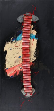 RE CARLO (n. 1954) Tamm tamm sotto il ponte Pathos. 2004. Tecnica mista e assemblaggio. Cm 50,00 x 100,00. Pubblicazione: Carlo Re Pianeta libero a cura di Giovanna Barbero, Verso L'arte Edizioni, 2004, pag.60.