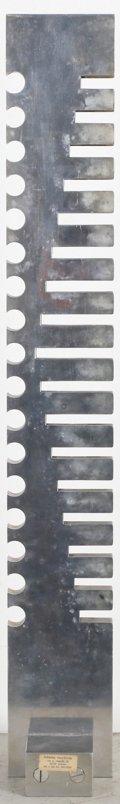 VECCHIONE ROBERTO (n. 1945) Senza titolo. Acciaio. Cm 14,00 x 69,00 x 6,00. 1/3 Tiratura, firma e anno incisi in basso. 1978 - 1991. Cartiglio descrittivo Arte Struktura, Milano alla base.