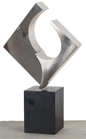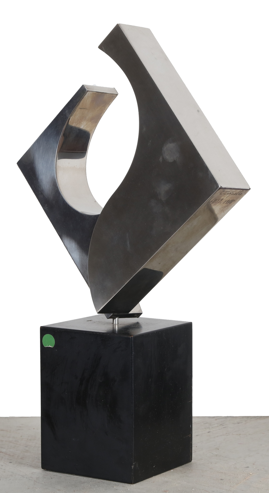 CAPPELLO CARMELO (1912 - 1996) Untitled. 1978. Steel. Cm 25,00 x 37,00 x 9,50. 49/99. Edition, signature and year engraved . Wooden base. Size without base: 25x24.5x4 cm.