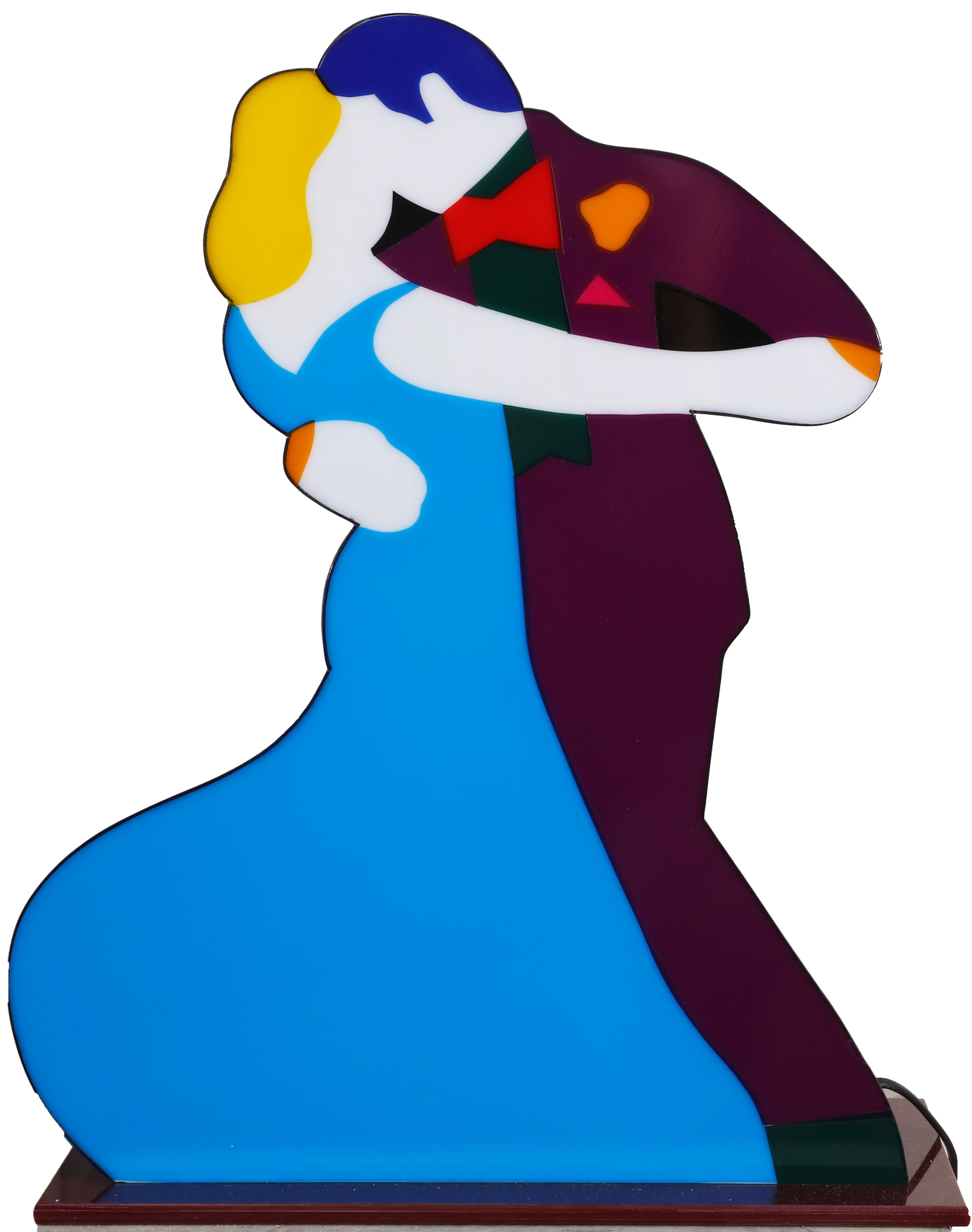 LODOLA MARCO (n. 1955) Dancers. Neon Perspex and enamels. Cm 38,00 x 50,00 x 19,00. Title and signature at the base. Artist’s authenticity certificate on photo.