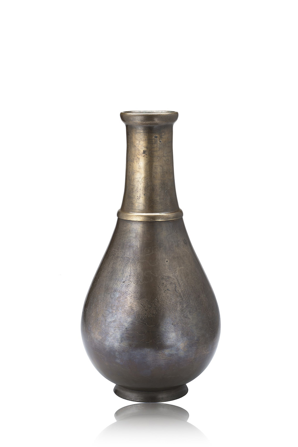 A silver-inlaid bronze vase decorated with Buddhist lions, with a Shi Sou mark to base
