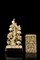 Portabiglietti in avorio lavorato, dalla forma rettangolare e piccola scultura in avorio raffigurante ramo di pino con gru, base in legno (difetti e mancanze)