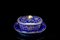 Scatola con coperchio e vassoio in metallo smaltato a forma di pesca, con decorazione floreale dorata su fondo blu