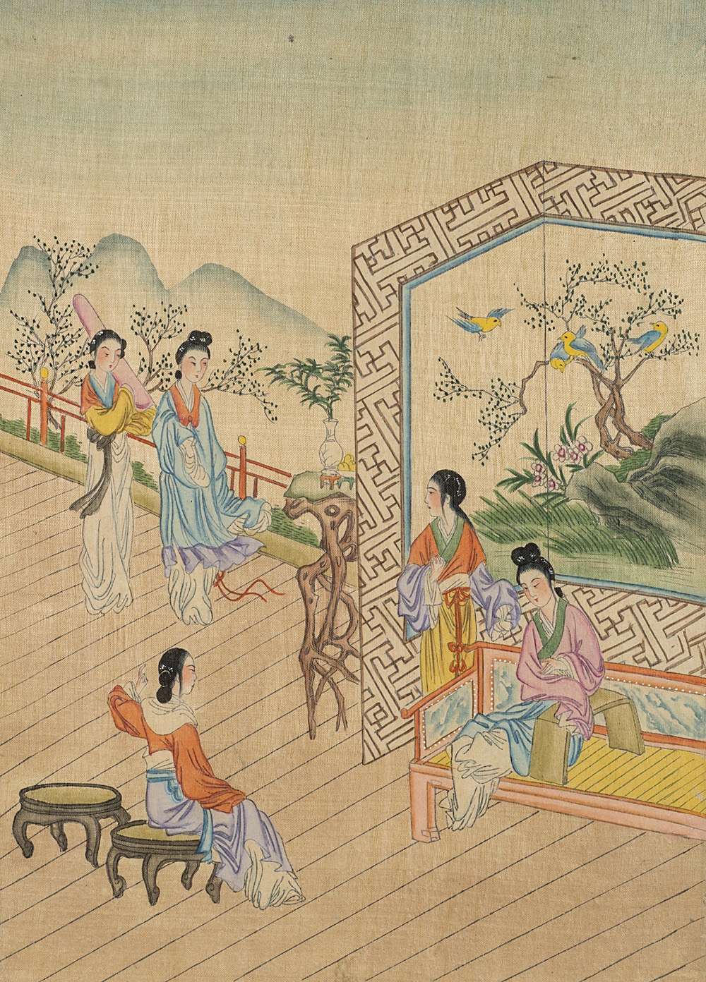 Lot 5072 | Sette dipinti raffiguranti scene varie, inchiostro e colore su seta, con...