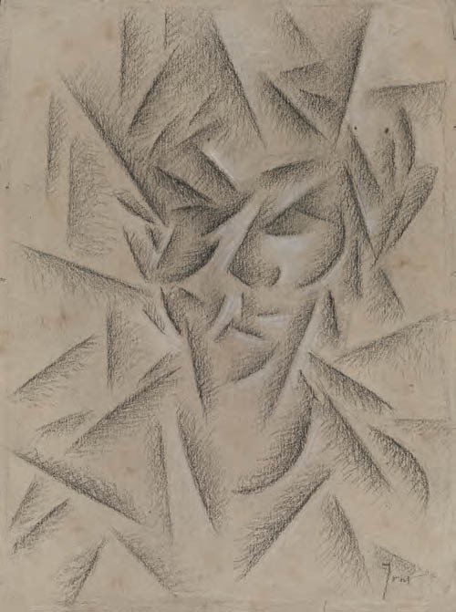 Roberto Marcello (Iras) Baldessari Innsbruck 1894 - Roma 1965 Scomposizione di testa, 1916 ca. Matita e gessetto bianco su carta, cm. 23,4x17,6 Firma in basso a destra: Iras. Esposizioni: Baldessari, Opere 1915 - 1934, a cura di Maurizio Scudiero, Cortina d'Ampezzo, Galleria d'Arte Frediano Farsetti, 27 dicembre 2008 - 7 gennaio 2009, poi Milano, Farsettiarte, 15 gennaio - 14 febbraio 2009, cat. n. 20, illustrato a colori.