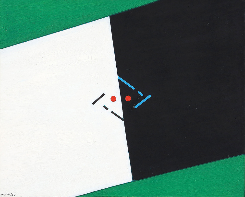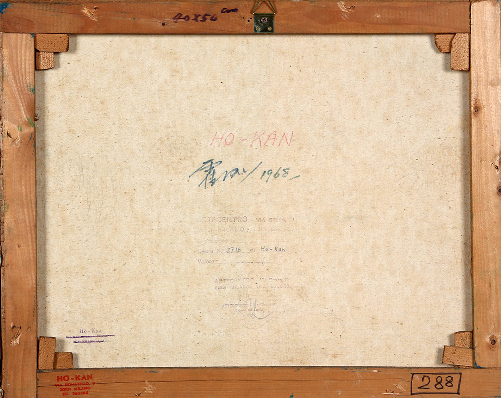 HO KAN 1932 Senza titolo, 1968 Olio su tela, cm. 40 x 50 Firmato e datato in basso a sinistra Timbro Artecentro, Milano sul retro Timbro dell'artista sul retro Prov. Collezione Privata