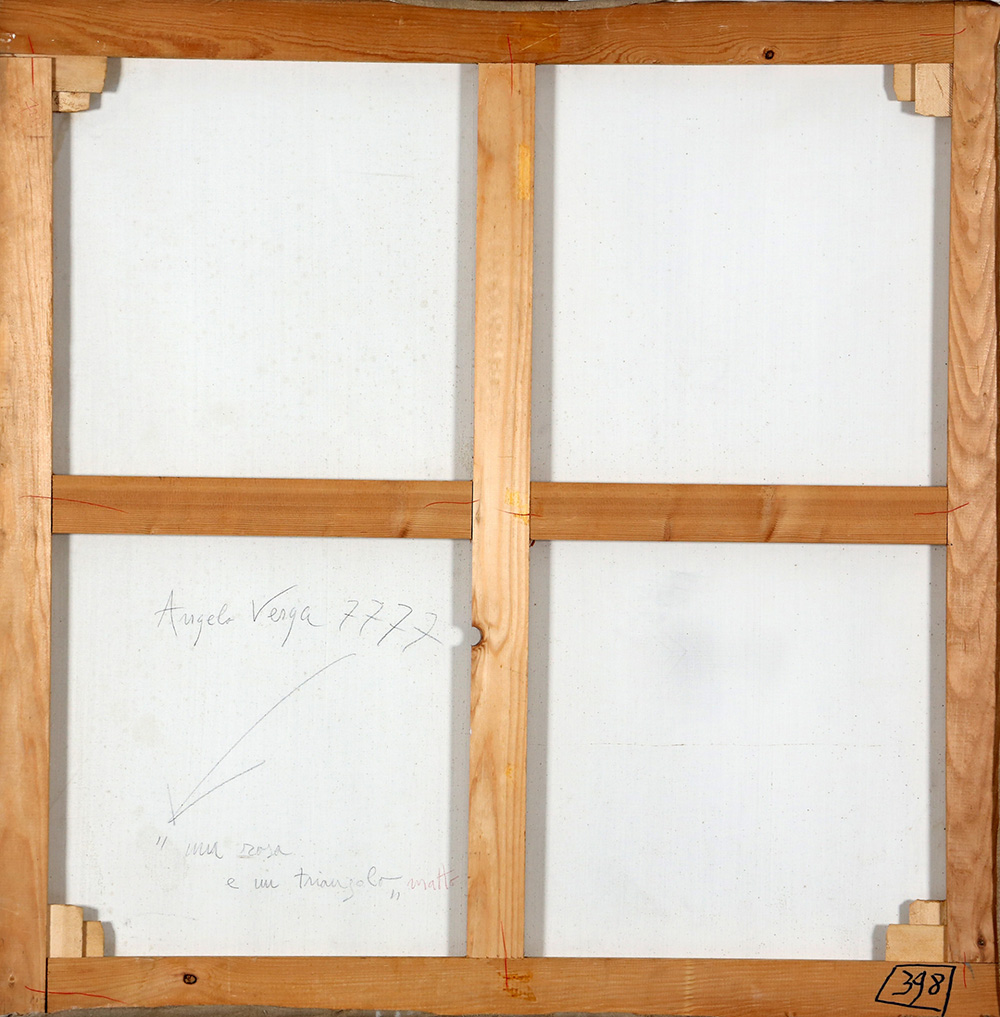 ANGELO VERGA 1933 - 1999 Una rosa e un triangolo Tecnica mista su tela, cm. 100 x 100 Firmato sul retro Prov. Collezione Privata