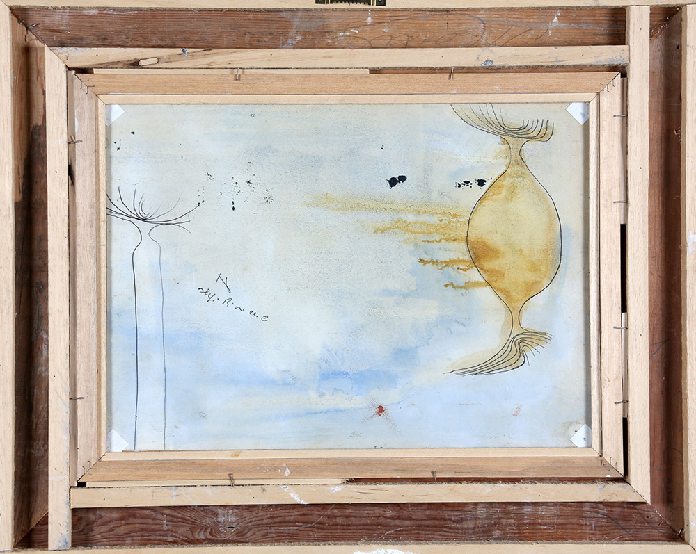 ACHILLE PERILLI 1927 Senza titolo, 1955 Tempera su cartone, cm. 28,7 x 38,9 Siglato e datato in basso a destra Il retro dell'opera è dipinto ad acquerello dall'artista Autentica dell'artista su fotografia Prov. Collezione Privata