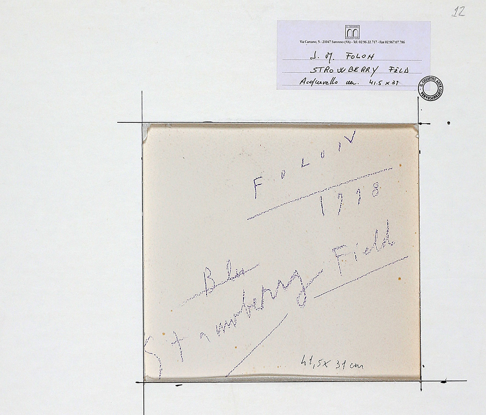 JEAN MICHEL FOLON 1934 - 2005 Strawberry fields, 1998 Acquerello su carta, cm. 41,5 x 31 Firmato in basso a destra Timbro e etichetta Il Chiostro Arte Contemporanea, Saronno sul retro Autentica dell'artista su fotografia Prov. Collezione Privata
