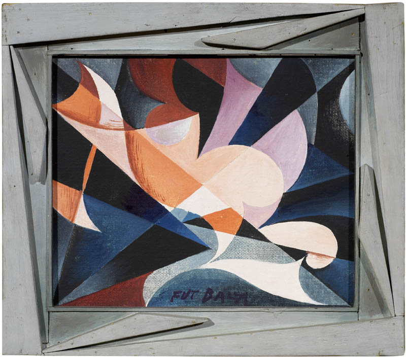 Giacomo Balla Torino 1871 - Roma 1958 Espansione, profondità dinamiche, 1924 Tempera su faesite, cm. 25x30, cm. 34x38,5 (in cornice d'autore) Firma in basso al centro: Fut Balla; titolo, firma, data e dedica al verso: Espansione / Profondità / dinamiche / Balla / 1924 / Al pittore / Luigi Aversano / con simpatia / G. Balla. Storia: Casa Balla, Roma (1924); Collezione Luigi Aversano, Roma (dono di Balla); Galleria d'arte Falsetti, Prato; Collezione Pontello, Firenze; Collezione privata Certificato di autenticità e provenienza su foto di Francesco Anfuso, Roma, 15/4/69; certificato su foto di Elena Gigli, Roma, 3 febbraio 2012, Archivio Gigli serie 2012, n. 520. Esposizioni: Opere di maestri contemporanei in vendita provenienti da raccolte private, Prato, Galleria d'arte Falsetti, 22 - 30 novembre 1969, cat. n. 132, illustrato.