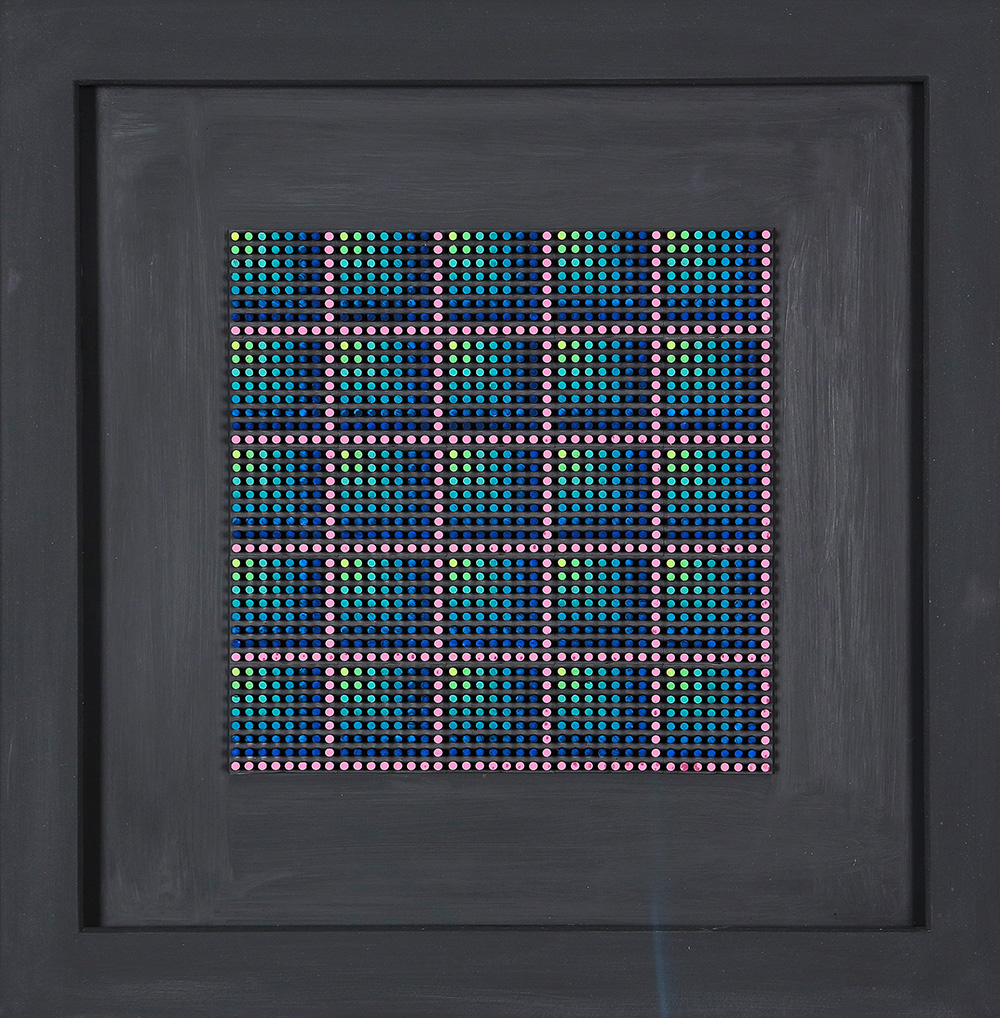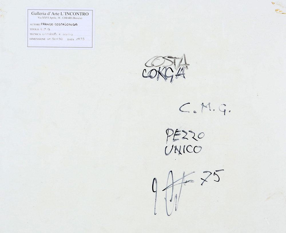 FRANCO COSTALONGA 1933 C.M.G., 1975 Cilindri in rilievo su tavola, cm. 50 x 50 Firmato e datato sul retro Etichetta Galleria d'Arte l'Incontro, Chiari sul retro Autentica dell'artista su fotografia Prov. Collezione Privata
