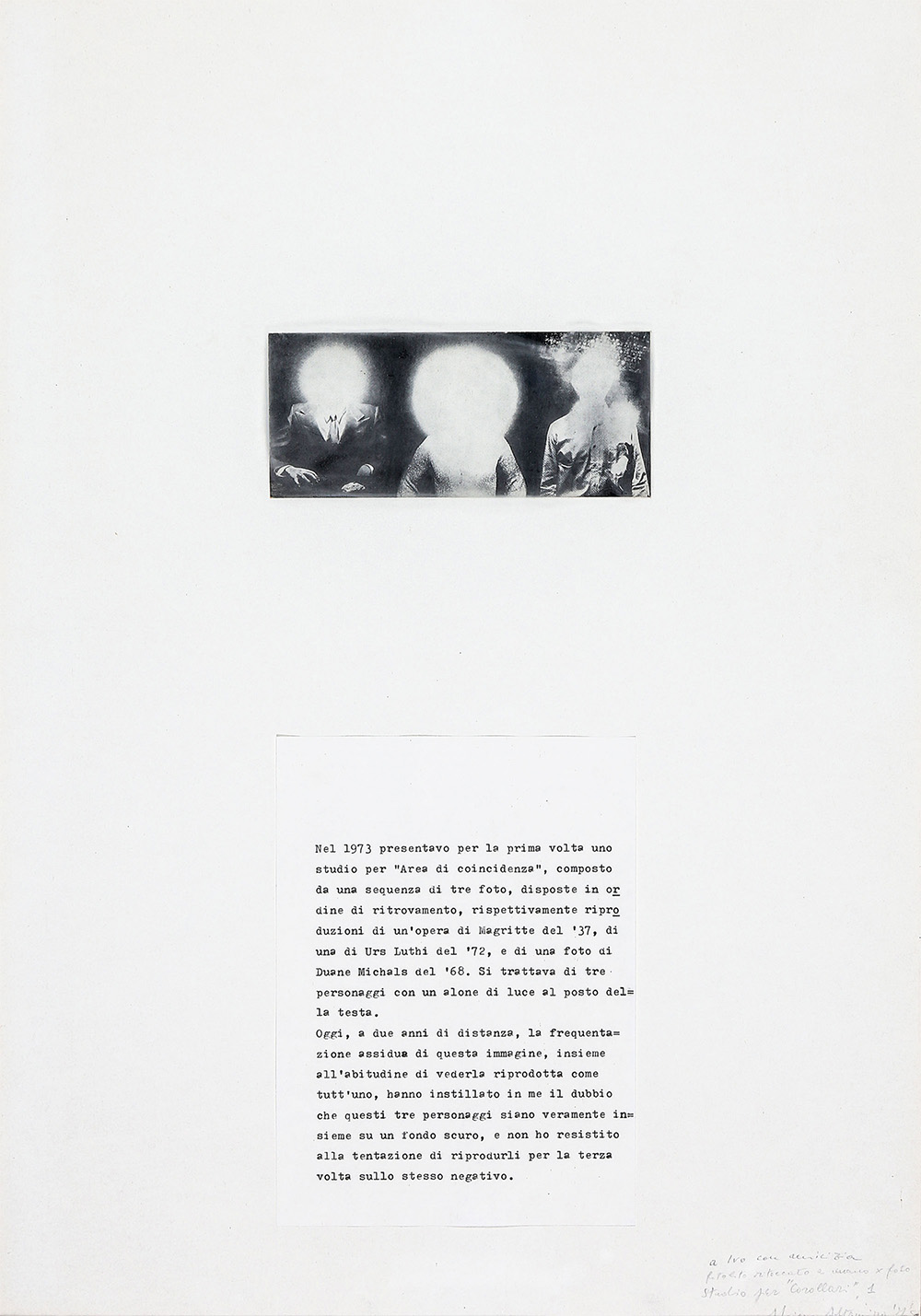 ADRIANO ALTAMIRA 1947 Studio per "Corollari" 1, 1975 Tecnica mista, collage di carta stampata e fotografia su carta Firmato e datato in basso a destra Dedica dell'artista in basso a destra Prov. Collezione Privata