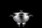 Zuppiera in argento di forma circolare e superficie liscia, con coperchio...