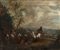 Seguace di Philips Wouwerman, secolo XVIII "Viandanti in un paesaggio" olio...