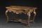 Tavolo da parete in noce intagliato, piano mosso e filettato; fascia con cassetto intagliata a girali di foglie e fiori. Gambe mosse terminanti a ricciolo unite da crociera centrata da doppia conchiglia. Veneto, sec. XVIII (cm 153x82x73) (difetti e restauri)