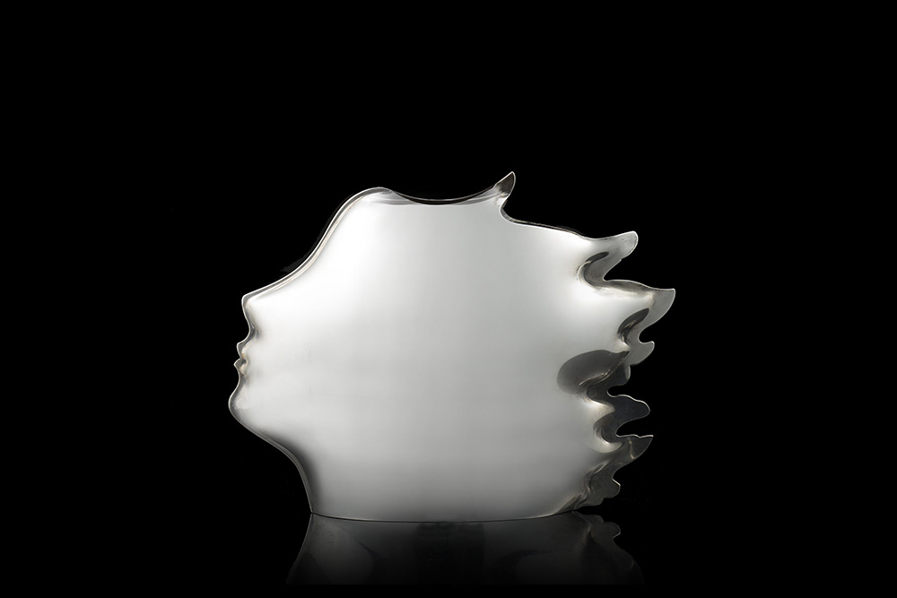 Vaso in argento (925/1000) 'Phoemina' raffigurante profilo femminile, con superficie liscia. Milano, sec. XX, argenteria De Vecchi; designer Gabriele De Vecchi (cm 21x27 ca) (gr 630 ca.) (lievi difetti)
