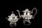 Teiera e zuccheriera in argento con corpo a balaustro, baccellato e decorato...